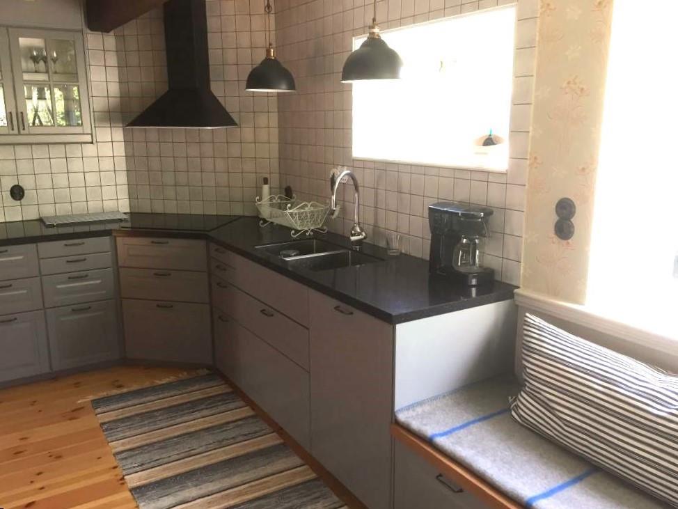 Huset har historie tilbage til 1940’erne, men det er helt bygget om og renoveret i den senere tid, så alt er lækkert og moderne. Køkkenet ligger i åben forbindelse med stuen, så I alle kan være sammen, også selv om nogen har køkkentjansen ved komfuret – hvis I altså ikke går ud og spiser eller griller i haven. Køkkenet er indrettet med alle moderne bekvemmeligheder.