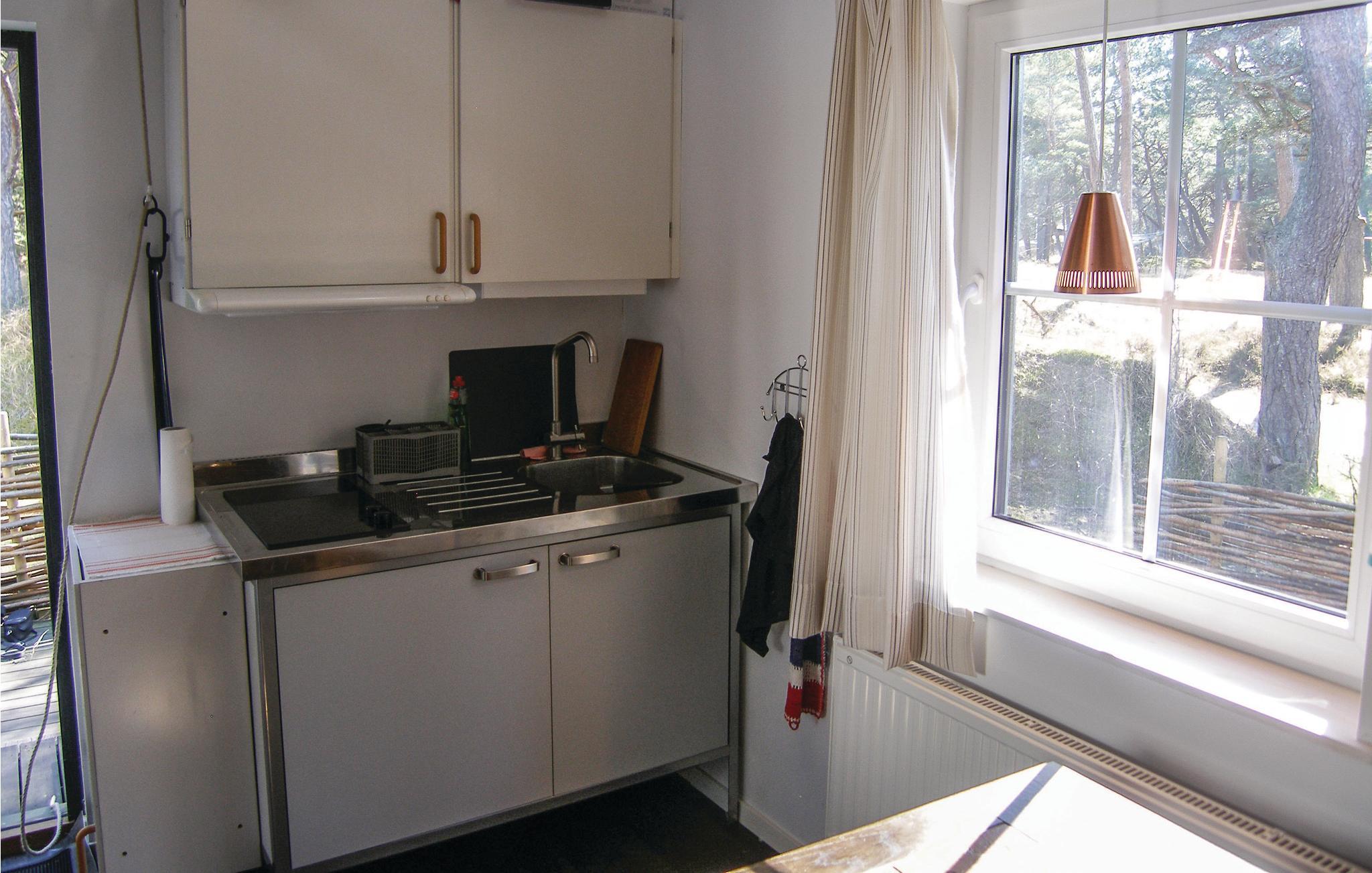 Unikt feriehus i strandskoven bare 300 m fra den lange sandstrand. I huset er der et praktisk alrum med køkken, her handler det om lidt men godt. I kommer op på hemsen af en stige der trækkes ned. Her er luftigt med loft til kip. I kælderen er der brusebad og en brændeovn. Pak madkurven og gå de 300 meter ned til stranden hvor I kan slappe af, bygge flotte sandslotte og tage en forfriskende svømmetur i det klare vand. Gå langs vandet til Sandhammaran som regnes som en af Österlens smukkeste strande, med hvidt finkornet sand. En km til en swimmingpool. Der er mange gallerier, butikker, gårdbutikker og hyggelige restauranter i nærheden. Fra huset tager det blot et kvarter at køre til både Ystad og Simrishamn. Herfra er der mange færgeforbindelser. Kun en halv time til flere golfbaner. Fx Österlens Golfklubb med to attenhulsbaner.