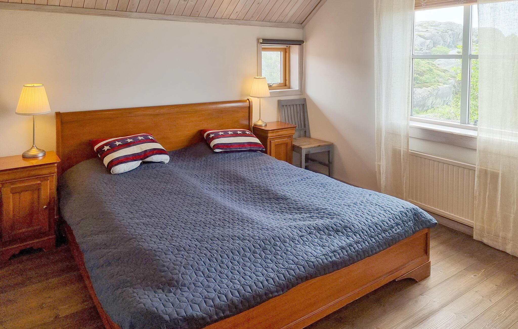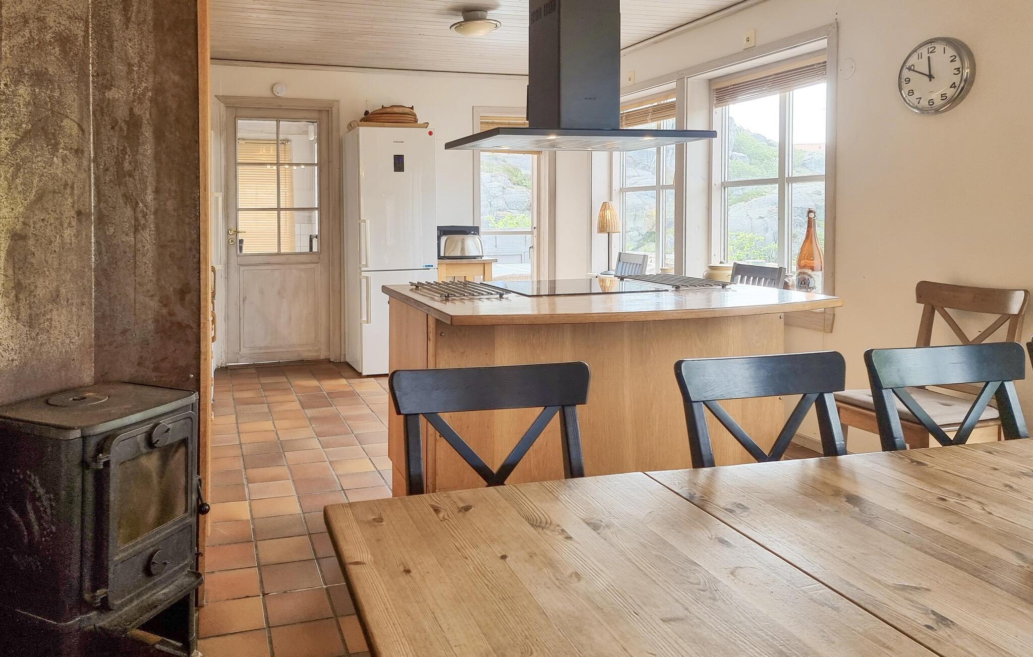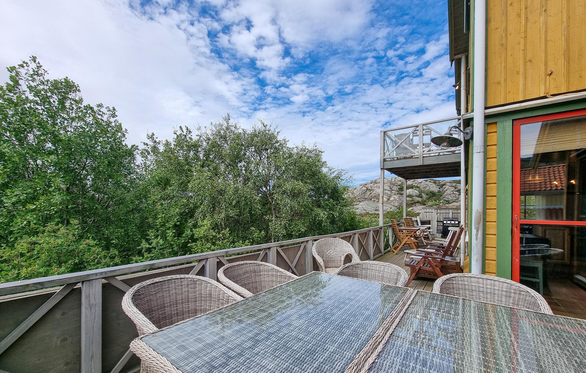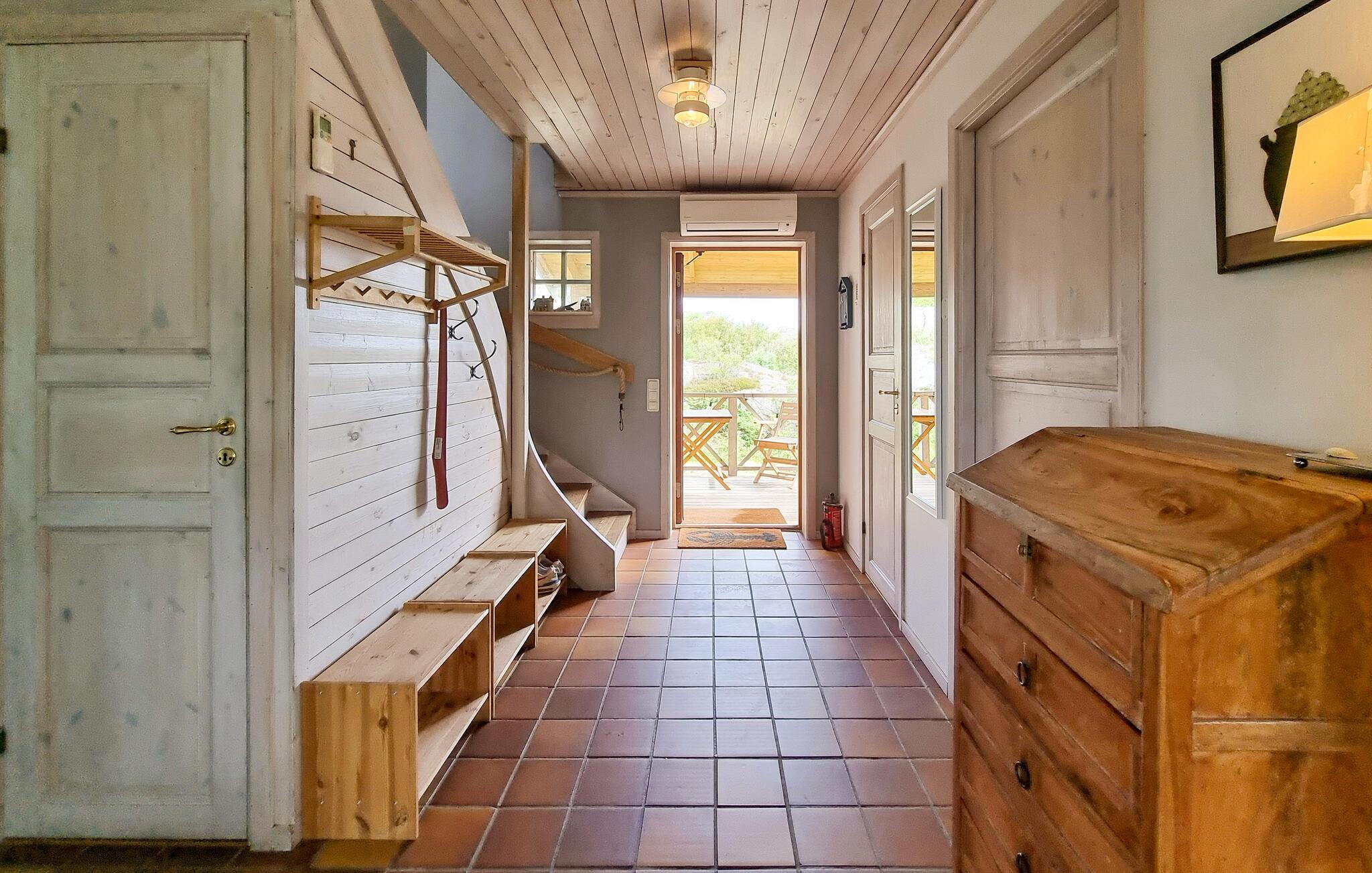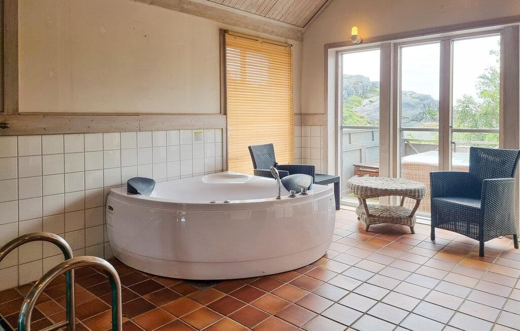Glæd jer til jeres næste ferie i Skärhamn, en idyllisk kystlandsby på den svenske ø Tjörn. Denne eksklusive luksusvilla giver jer alt, hvad I skal bruge til et afslappende ophold. Nyd den panoramiske havudsigt, mens I slapper af på den store terrasse og fylder lungerne med den friske havluft. Uanset om det er forår, sommer, efterår eller vinter, giver denne bolig jer det højeste niveau af komfort i hver sæson. Snup en frisk dukkert i indendørspoolen på stedet med hele familien. Afslut dagen i et af de to boblebade eller slap af i den varme sauna. I kan lave mad sammen i det veludstyrede køkken og så afslutte aftenen foran pejsen i den hyggelige stue.