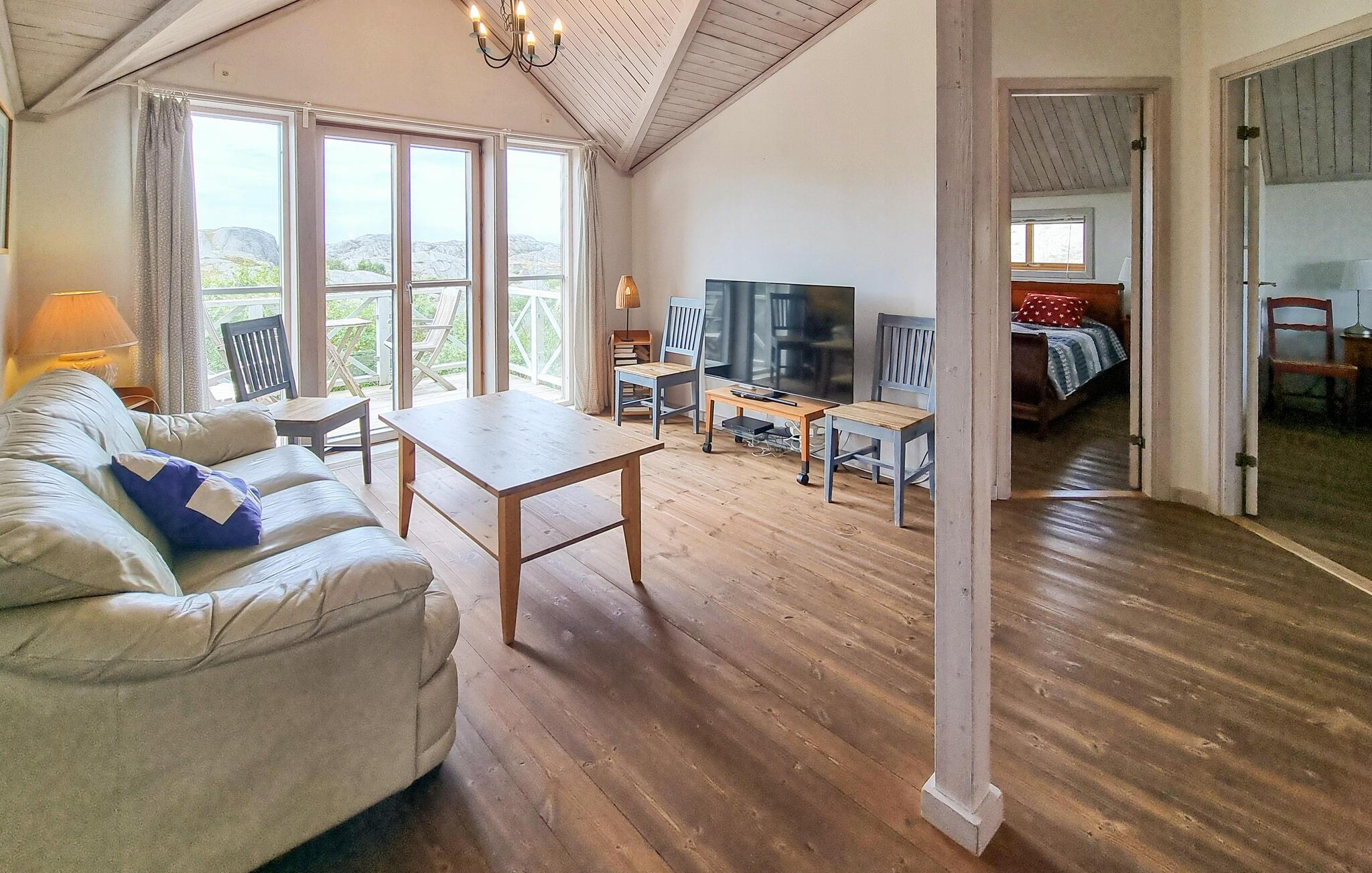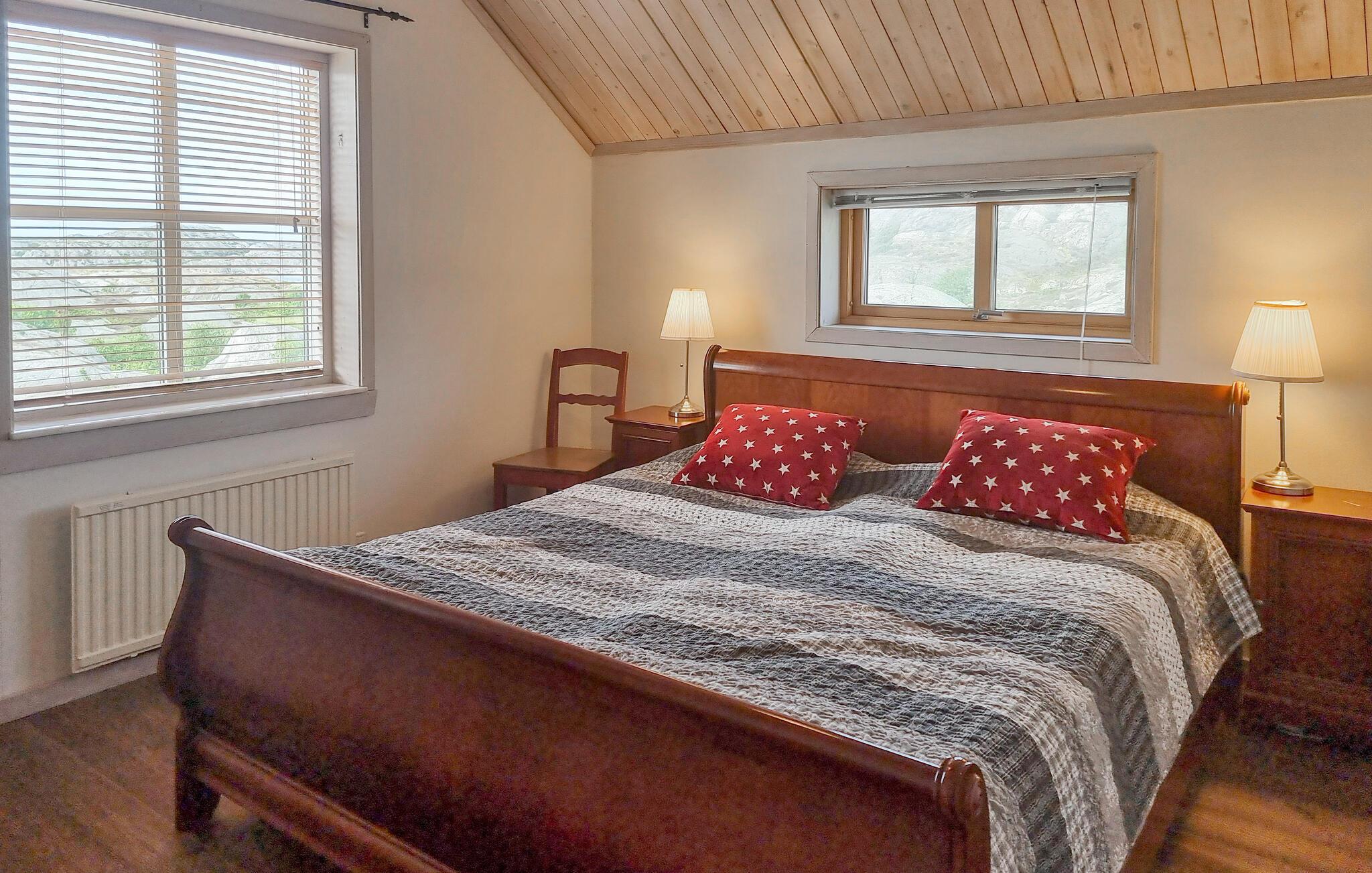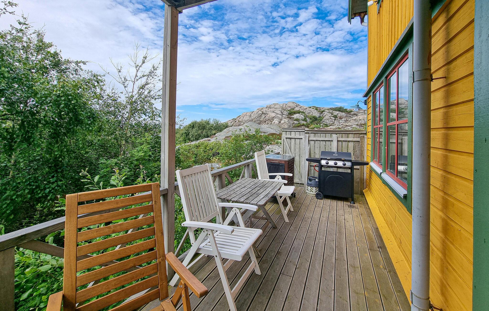 Udnyt villaens optimale beliggenhed til at udforske den betagende natur i Området. Blot et stenkast fra feriehuset finder I en badebugt med badebro, klipper og en lille sandstrand. Motorbådudlejning er tilgængelig, hvis I vil på eventyrlige bådture. Udforsk de omkringliggende øer og nyd kystlandskabet.