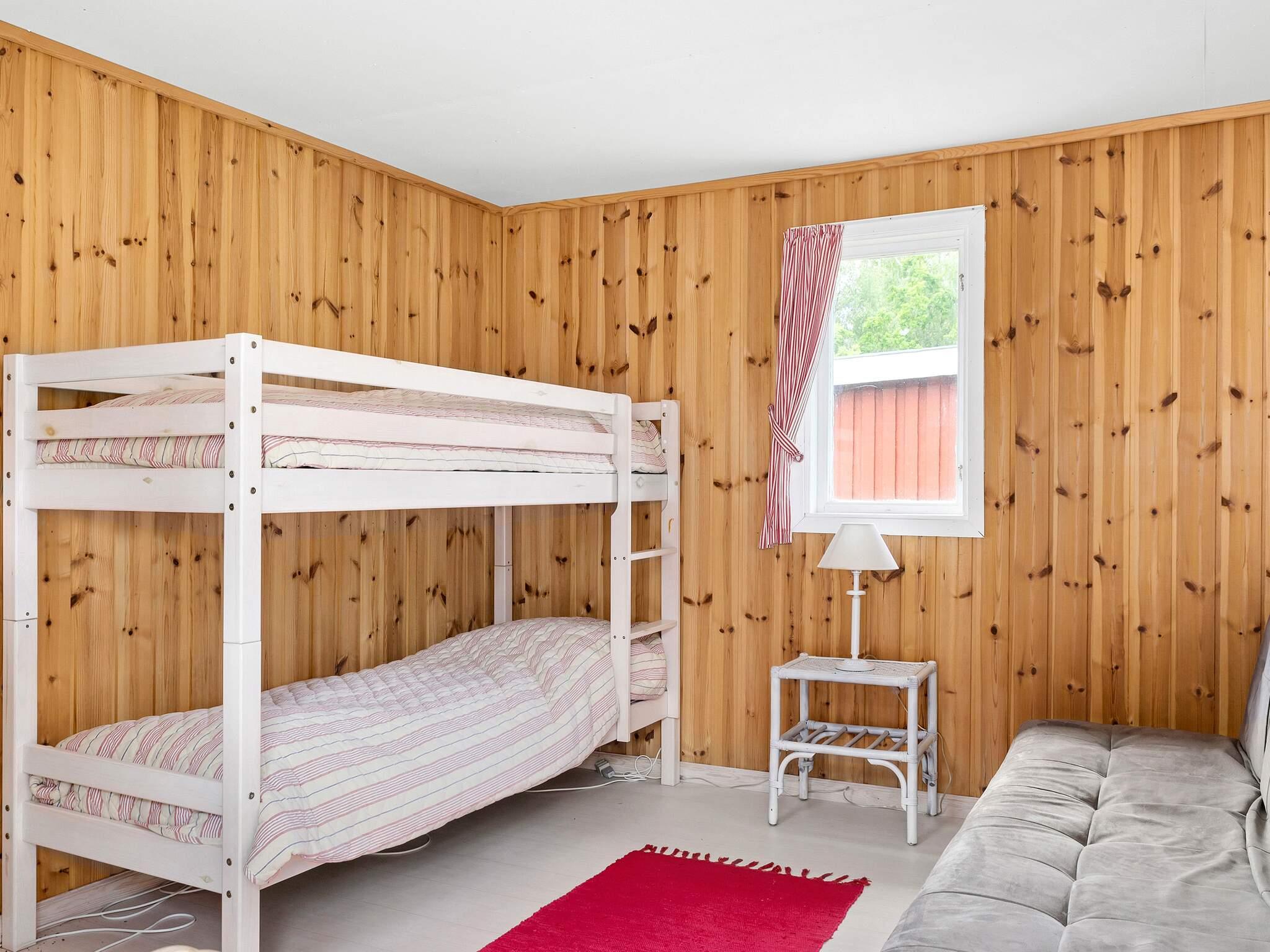 Det finns även två sovrum i storstugan som rymmer varsin en skön dubbelsäng. För den som kommer några fler har man som nämnt bäddsoffan i vardagsrummet att bädda ut eller annexet (lillstugan) intill med en våningssäng och tv. Perfekt för de större barnen.