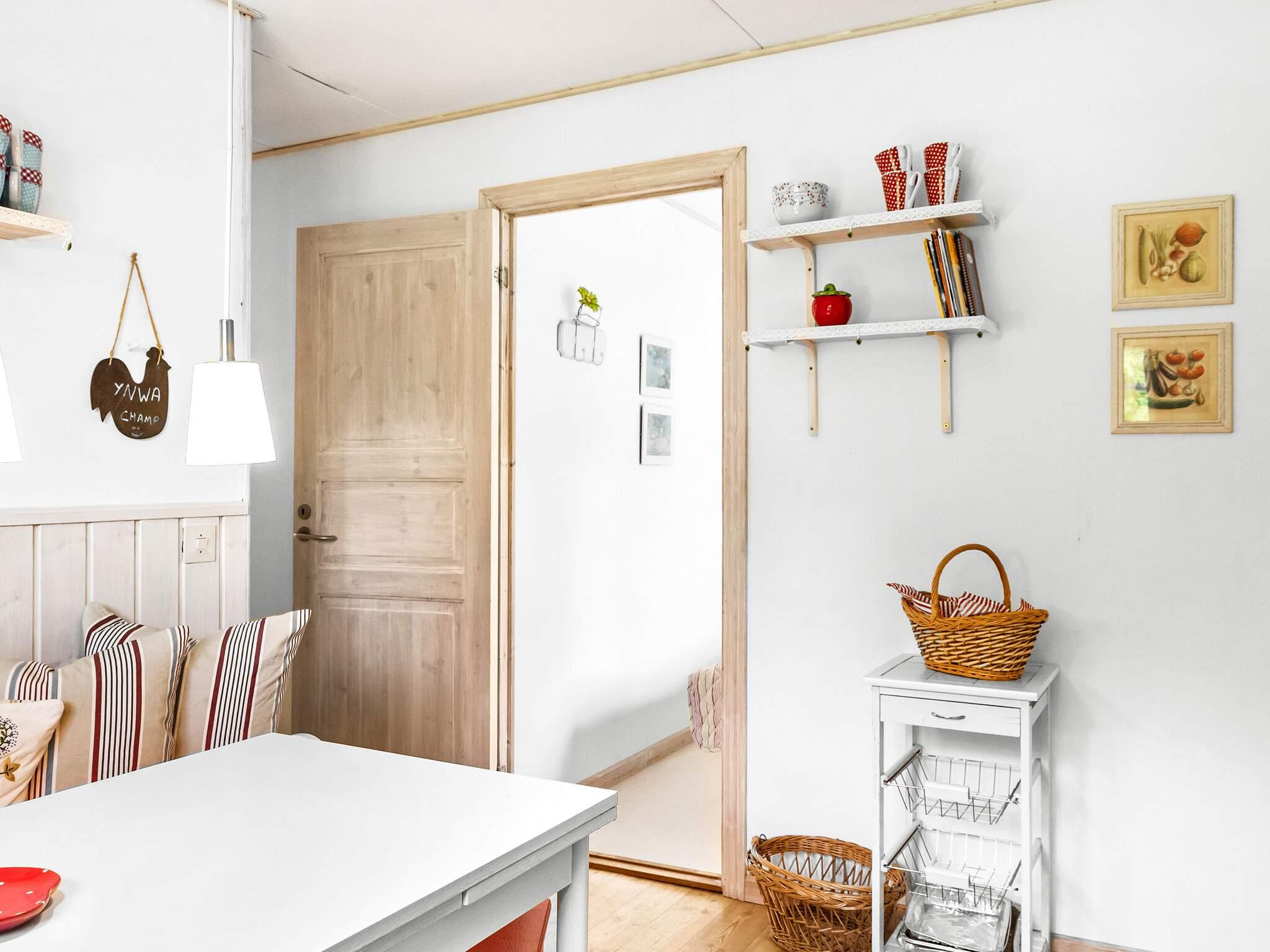 Väl inne i stugan följer känslan utifrån med dig in. Trots en relativ nätt och söt stuga så känns den otroligt rymlig. Du känner dig hemma direkt. En väldigt mysig stuga som bara kramar om dig. Ett fint genomgående tema av lite dova färger med inslag av rött.