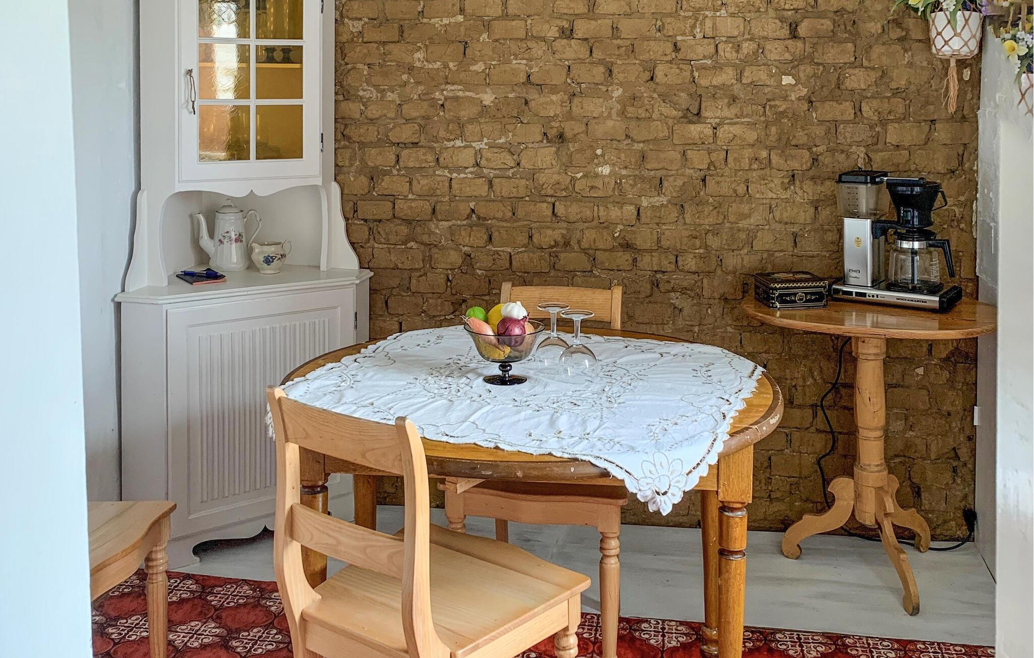 Dette tidligere skomagerhus er blevet omdannet til en hyggeligt og charmerende feriehus, som kan danne er skøn base for jeres ferie. Antikke møbler, synlige murstensvægge og den lyse overetage skaber en varm og hyggelig atmosfære, så I kan lade batterierne op.