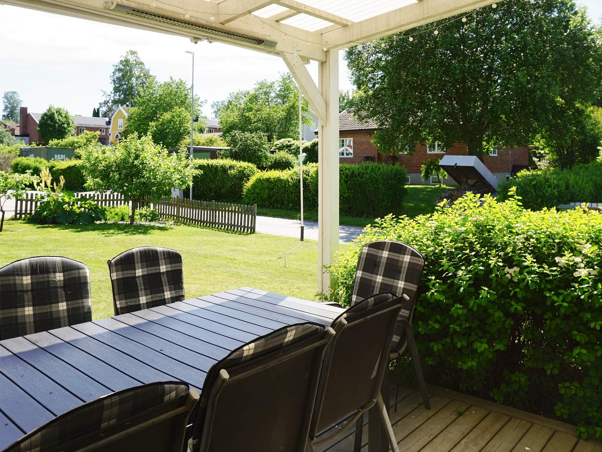 Mycket trivsamt hus på två plan med kök, vardagsrum, sovrum, badrum, gästwc och tvättstuga på entréplan. Utgång till härlig uteplats under tak från vardagsrum. En trappa upp finns ett till allrum med en träningshörna samt en enkelsäng. På övervåningen finns även tre sovrum till samt ett stilfullt badrum med dusch. Spjälsäng i form av resesäng finns att tillgå. Belägen på trevlig tomt med härligt solläge, utemöbel och loungegrupp. Grönskande gräsmatta som gjord för lek med en liten lekstuga för de små. Generös parkering på uppfart.