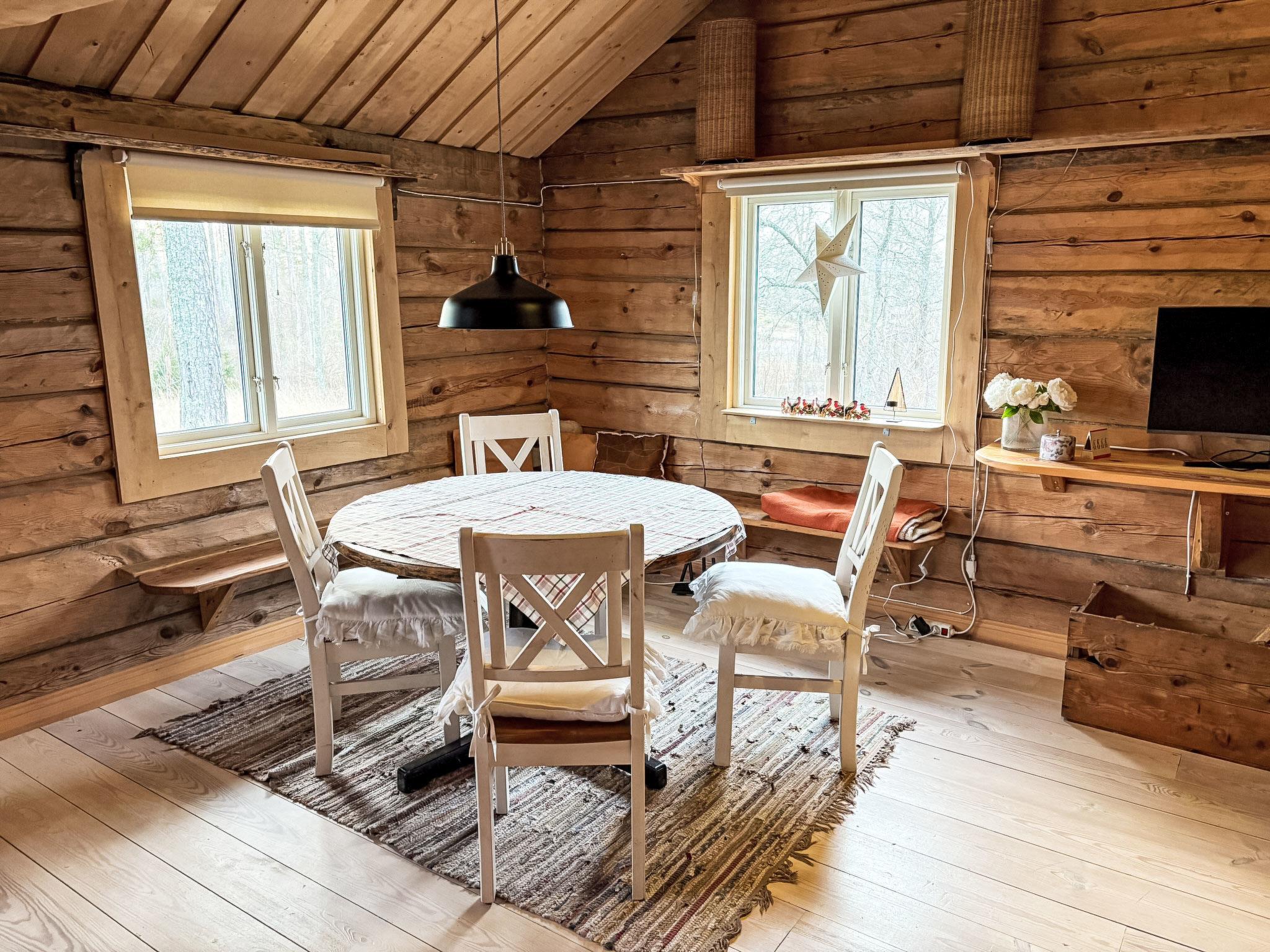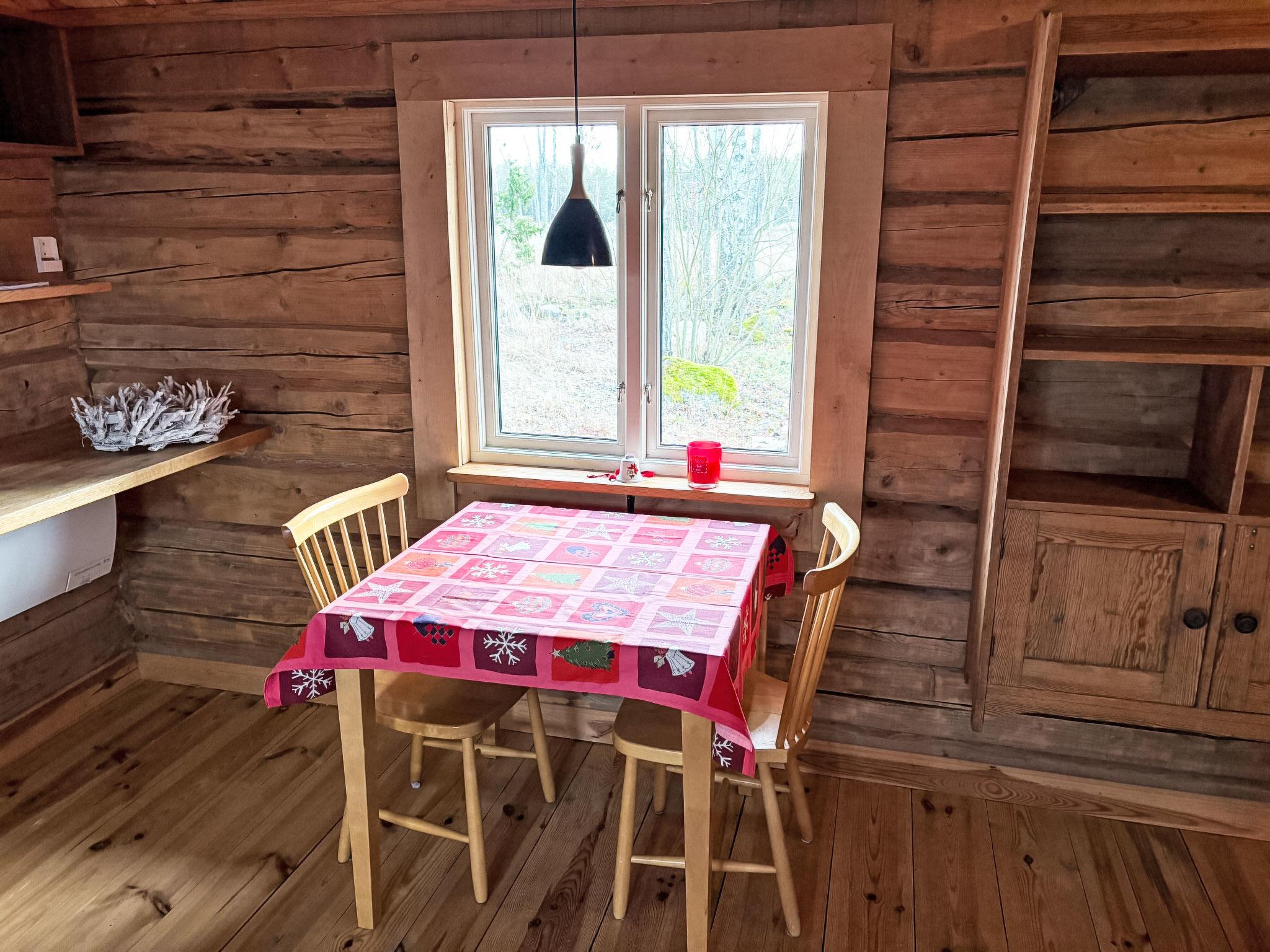 "Ekbacken", 2-room house 66 m2. Object suitable for 3 adults + 2 children. Spacious, with sloping ceilings, tasteful and cosy furnishings: open living/sleeping room with 1 double bed (180 cm, length 200 cm), TV. Sleeping alcove with 1 bed (80 cm, length 200 cm). Large, open kitchen (4 hot plates, oven, microwave, freezer, electric coffee machine) with dining table. Exit to the garden. Shower/WC. Heating, electric heating, boiler (70 litres). Upper floor: (ladder) small sleeping alcove 12 m2 with 2 beds. Wooden floors. Comfortable furnishings in the country house style. Large terrace 24 m2. Terrace furniture, barbecue (portable). Beautiful view of the lake, the countryside and the forest. Facilities: washing machine, iron, logs (extra). Internet (WiFi, free). Please note: non-smoking house. Maximum 1 pet/ dog allowed. Smoke alarm, fire extinguisher. TV via casting. Instead of an enclosed bedroom, some sleeping areas are located in an open-plan area (gallery, alcove, etc.).