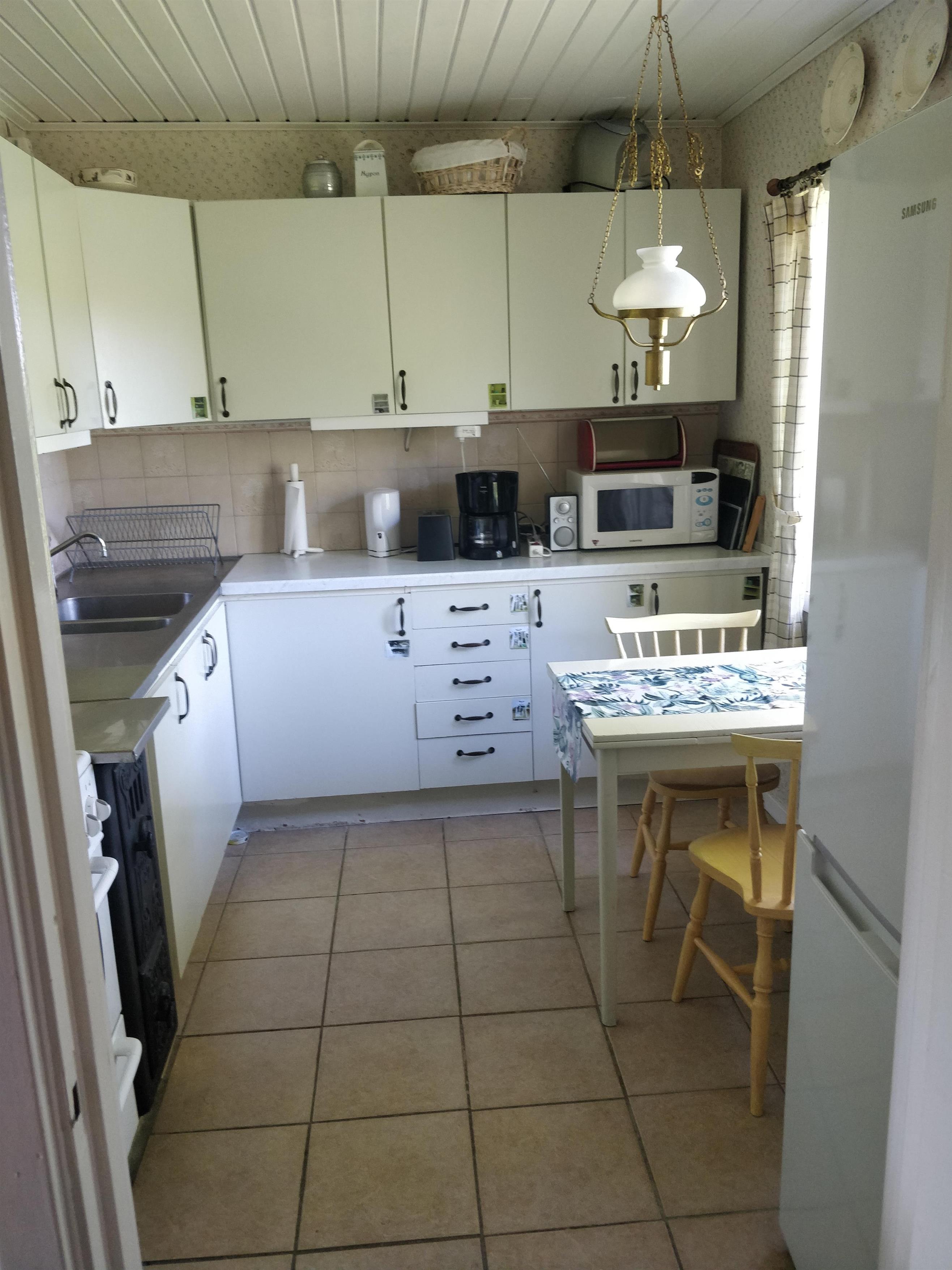 Toilettet er et miljø toilet (Separett). Der er vaskemaskine og tørremuligheder i kælderen eller uden for på et tørrestativ.