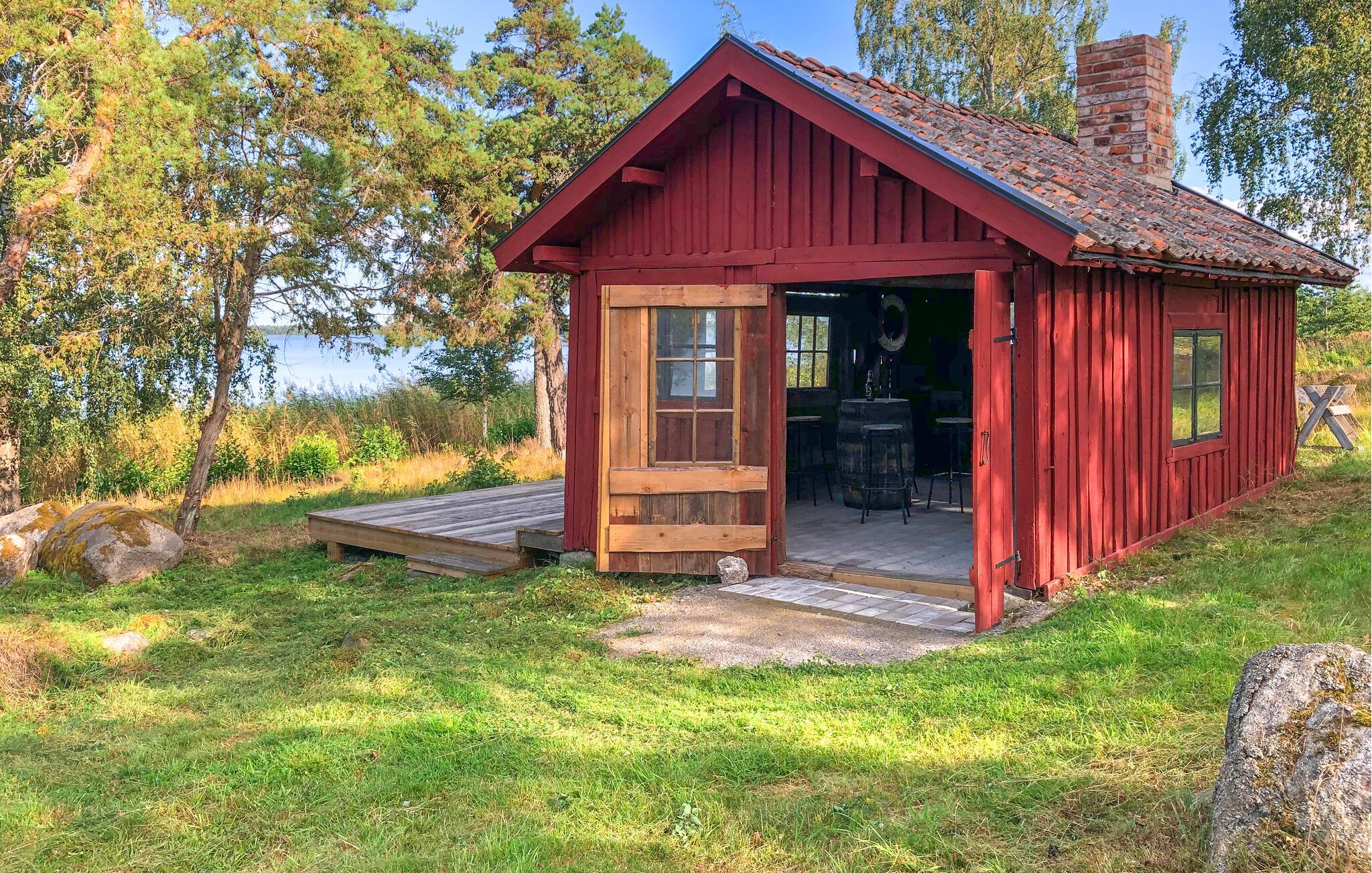 Huset ligger på den idylliske ø Aspö ved Mälarens glitrende bred. Her venter en oase af fred og afslapning, let tilgængelig med bil. Træd ind i de rummelige opholdsrum, hvor den knitrende pejs skaber en varm og indbydende atmosfære på køligere dage. Det veludstyrede køkken er en drøm for enhver håbefuld kok. De store arbejdsflader og den indbydende bar med barstole er perfekte til hyggelige sammenkomster – alt sammen med udsigt over den glitrende sø.