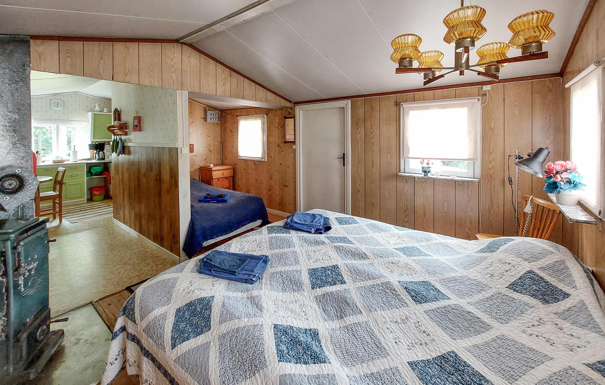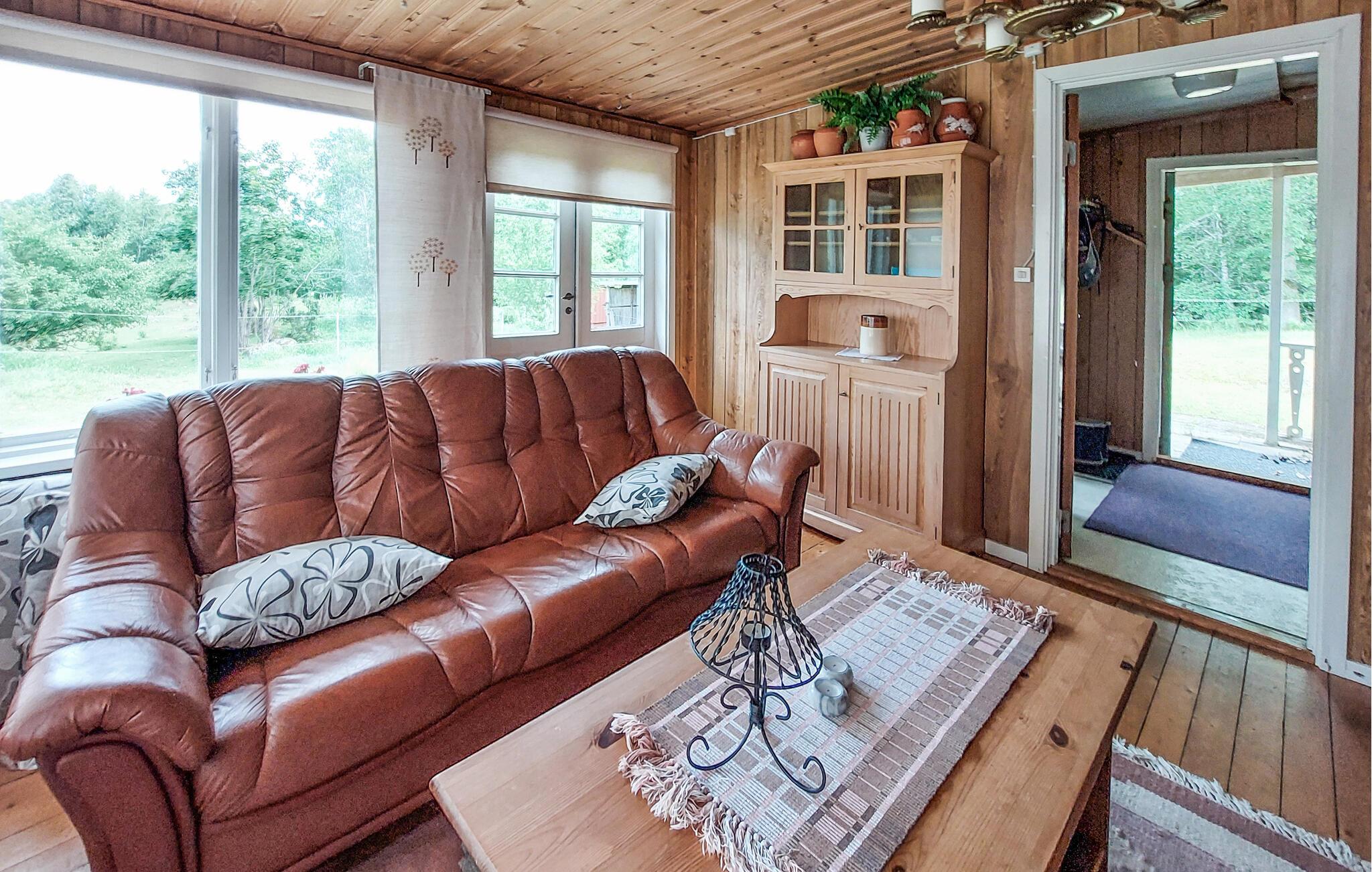 Denne hyggelige hytte er smukt beliggende ved skoven og mellem to søer. Tænd pejsen og glæd jer til hyggelige måltider i en hyggelig og charmerende atmosfære. Efter en lang dag i den friske luft kan I finde jer selv komfortabelt i sofaen og nyde sjove spilleaftener med familien.