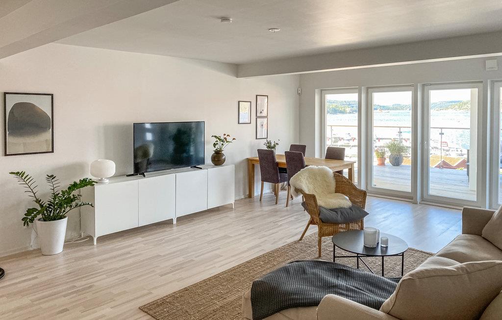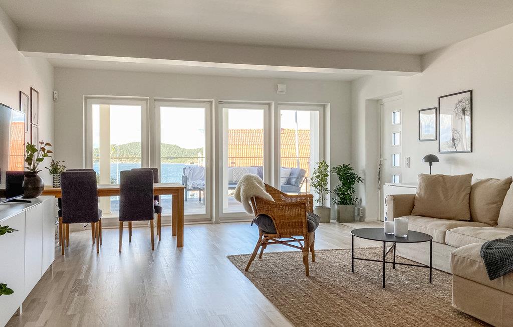 Fra de fleste værelser og fra terrassen er der en fantastisk panoramaudsigt til Halsefjorden. To fine soveværelser med komfortable senge og en sovesofa til to i stuen. Dejligt og veludstyret køkken, hvor I kan sammensætte skønne måltider.