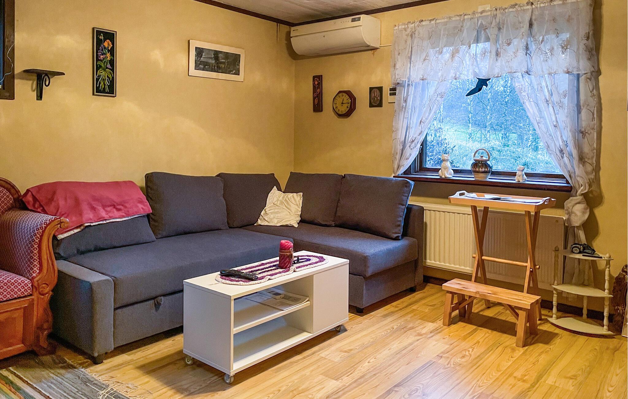 Dette indbydende og klassiske feriehus er det perfekte sted til en afslappende ferie midt i naturen. Med sine glade farver og klassiske indretning tilbyder det alt, hvad I behøver for et ubesværet ophold. Brændeovnen skaber en hyggelig stemning på kølige aftener, mens den dejlige have er ideel til at nyde freden eller slappe af i solen.