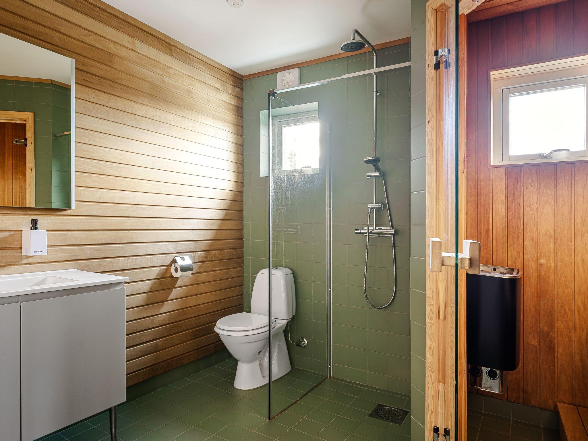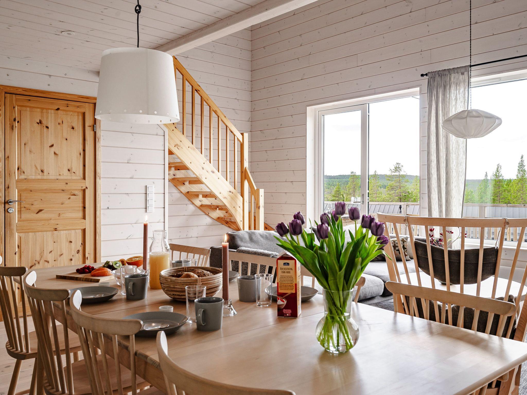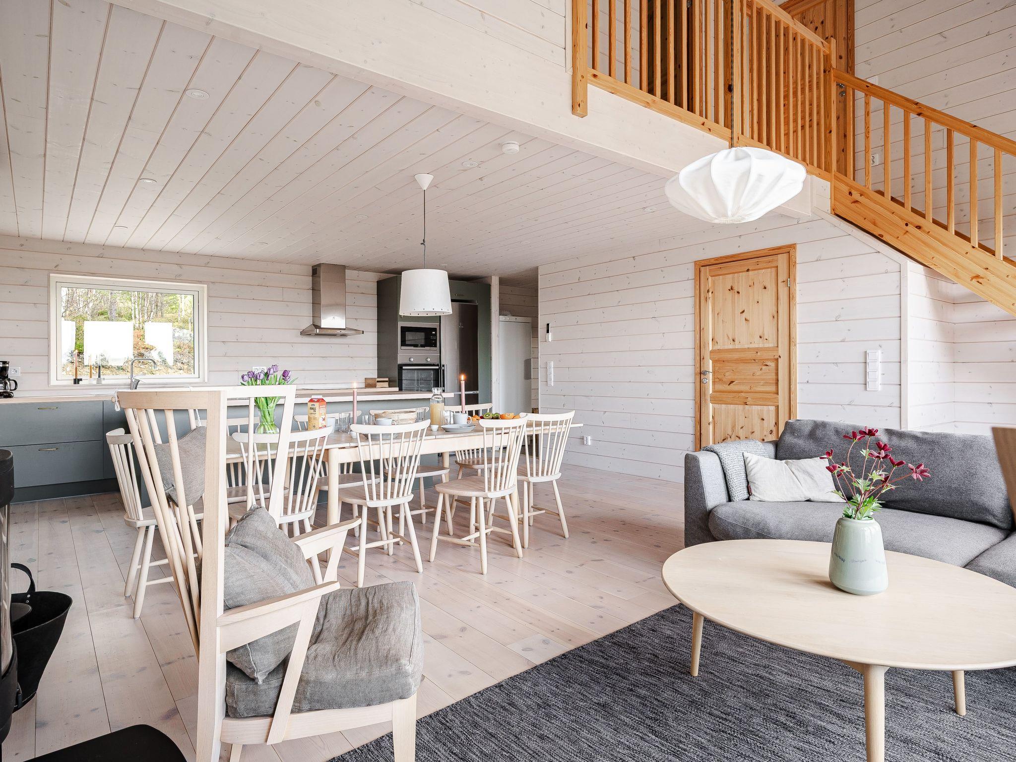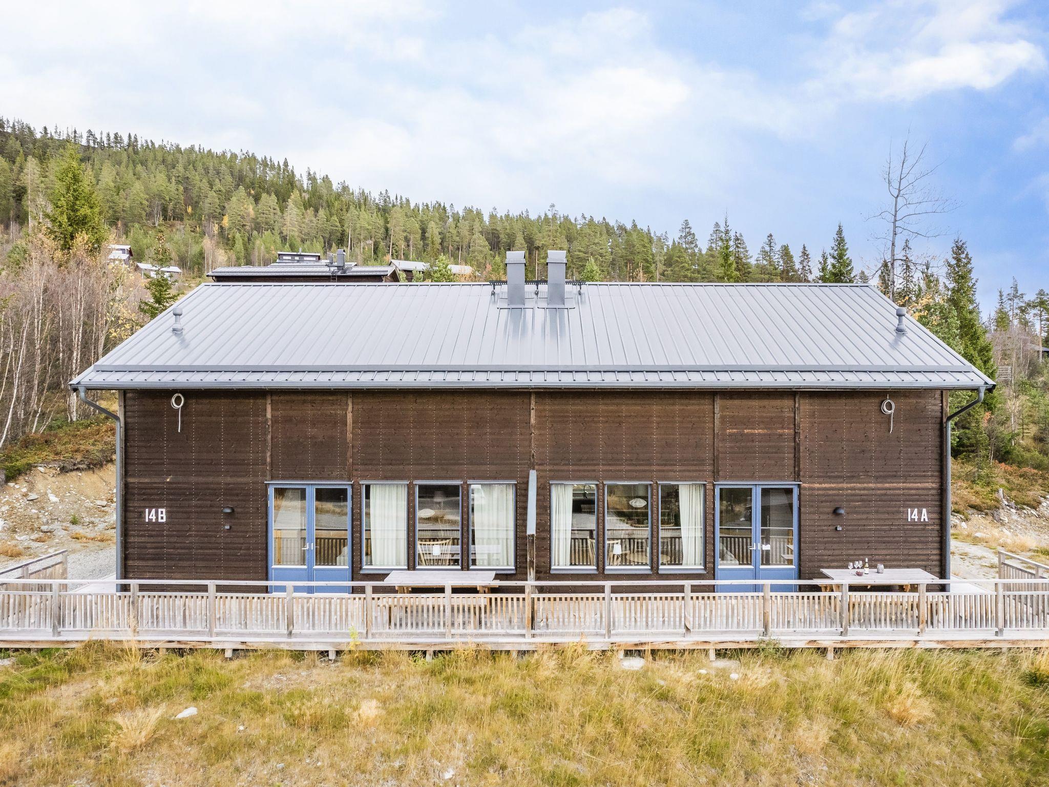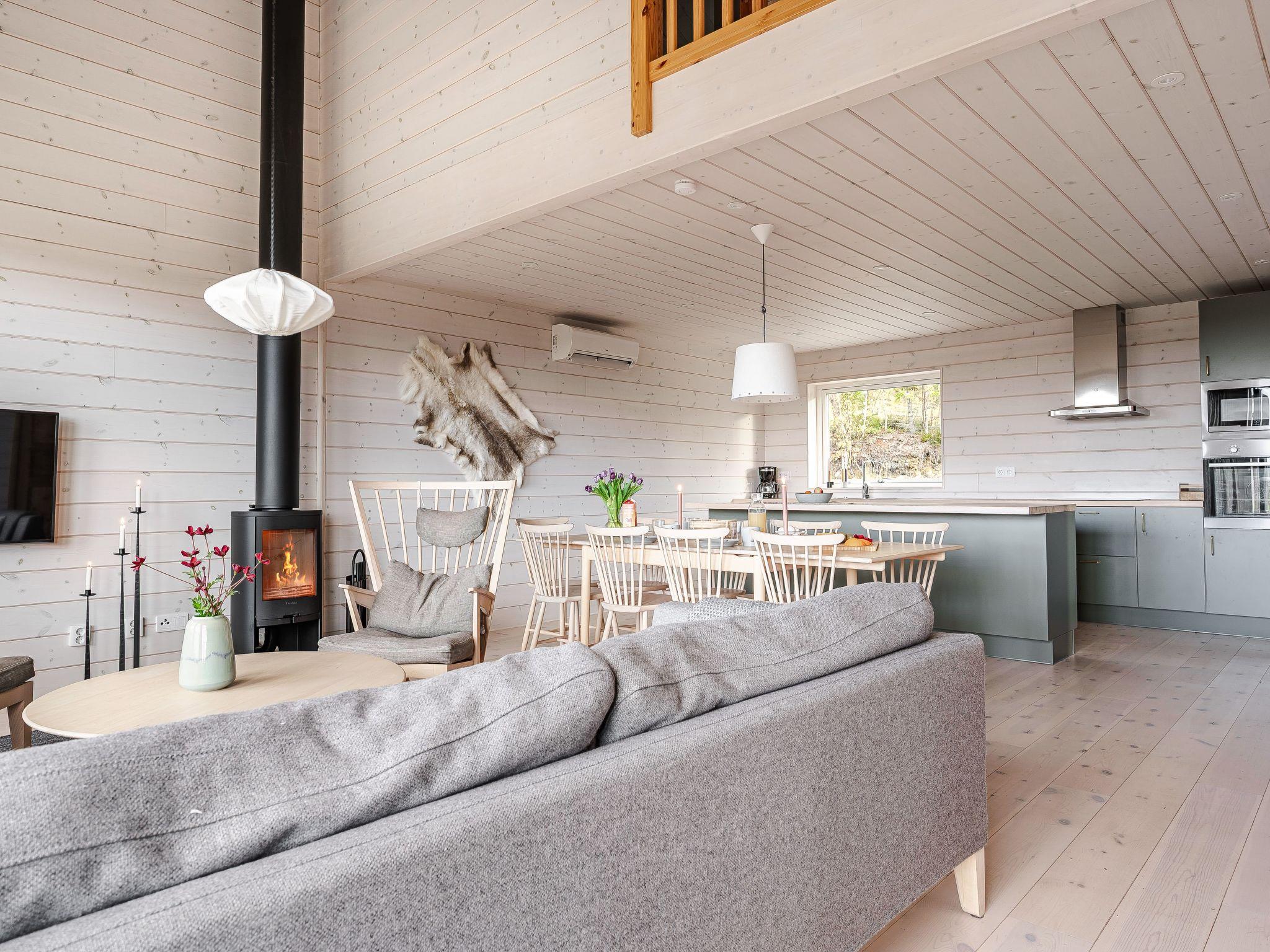 "Renen 14A", 4-room house 105 m2 on 2 levels. Bright, modern and cosy furnishings: open living/dining room with Scandinavian wood stove. Exit to the terrace. Open kitchen (oven, dishwasher, 4 ceramic glass hob hotplates, toaster, kettle, microwave, freezer, electric coffee machine). 2 showers/WC, Sauna. Electric heating. Upper floor: 2 double bedrooms, each room with 1 double bed (160 cm, length 200 cm). 1 room with 2 x 2 bunk beds (90 cm, length 200 cm). Parquet floors. Large terrace, south facing position. Panoramic view of the mountains and the forest. Facilities: Internet (WiFi). Please note: non-smoking house. Maximum 1 pet/ dog allowed. Smoke alarm, fire extinguisher.