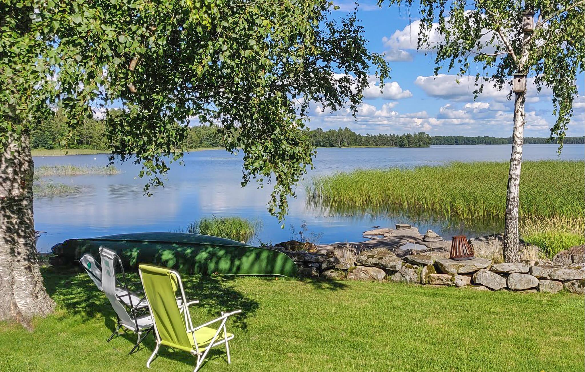 Huset er både indbydende og komfortabelt indrettet, og med sin vidunderlige beliggenhed lige ved vandet får I det ideelle udgangspunkt for en ferie med fred, ro og masser af smuk natur. Indretningen fremtræder både lyst og hyggeligt og skaber en atmosfære, I ikke kan undgå at slappe af i. Begynd dagen ud i ro og mag med en lækker morgenmad, mens I nyder udsigten over søen. Efter dagens udflugter i naturen kan I tænde op i grillen og tilberede nogle saftige bøffer og grillspyd, mens børnene løber rundt og leger i den hyggelige have.