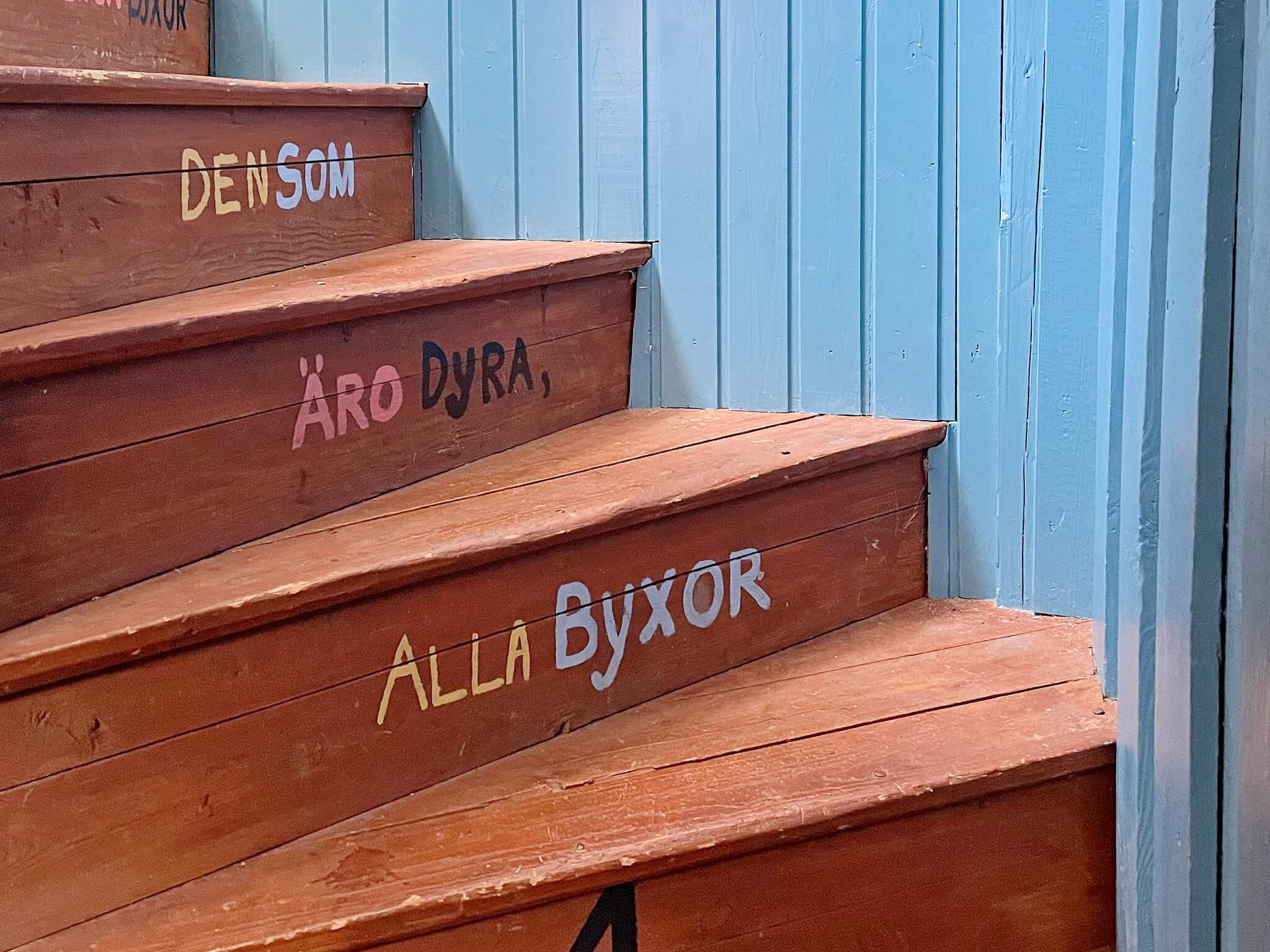 En våning upp hittar ni stugans två sovrum. Till höger ett sovrum med dubbelsäng. Sovrummet till vänster erbjuder två sängar varav en 120-säng. (I bägge sovrummen står det kaminer, men dessa får inte eldas i.)