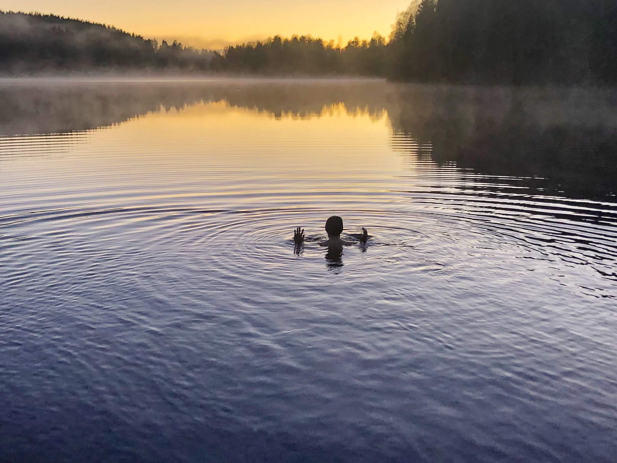 Ta på dig skorna och följ stigen cirka 300 meter ner till sjön. Här går det att bada via stenhäll. Vill ni hellre ha en ordentlig badplats med brygga och sandstrand, så finner ni det i Östervallskog en kort bilresa bort.