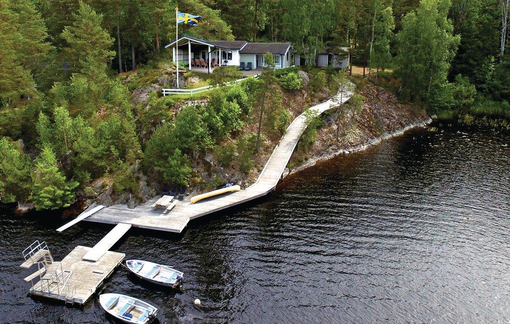 Solnedgangen fra den skønne terrasse, vil være noget af det, I tager med hjem som minde efter ferien. Søen er lystfiskerens drøm med regnbuelaks, gedde, aborre, ål mv. På grunden er der egen bro med tre meters udspringstårn, trampolin og plads til at lægge båden til. Desuden er der mulighed for at sætte båden i vandet 100 m fra huset. Der er meget vildt i området og er I heldige, kan I se skovens konge, nemlig elgen. Her er også mange bær og svampe, og I får alt i alt en naturoplevelse ud over det sædvanlige.