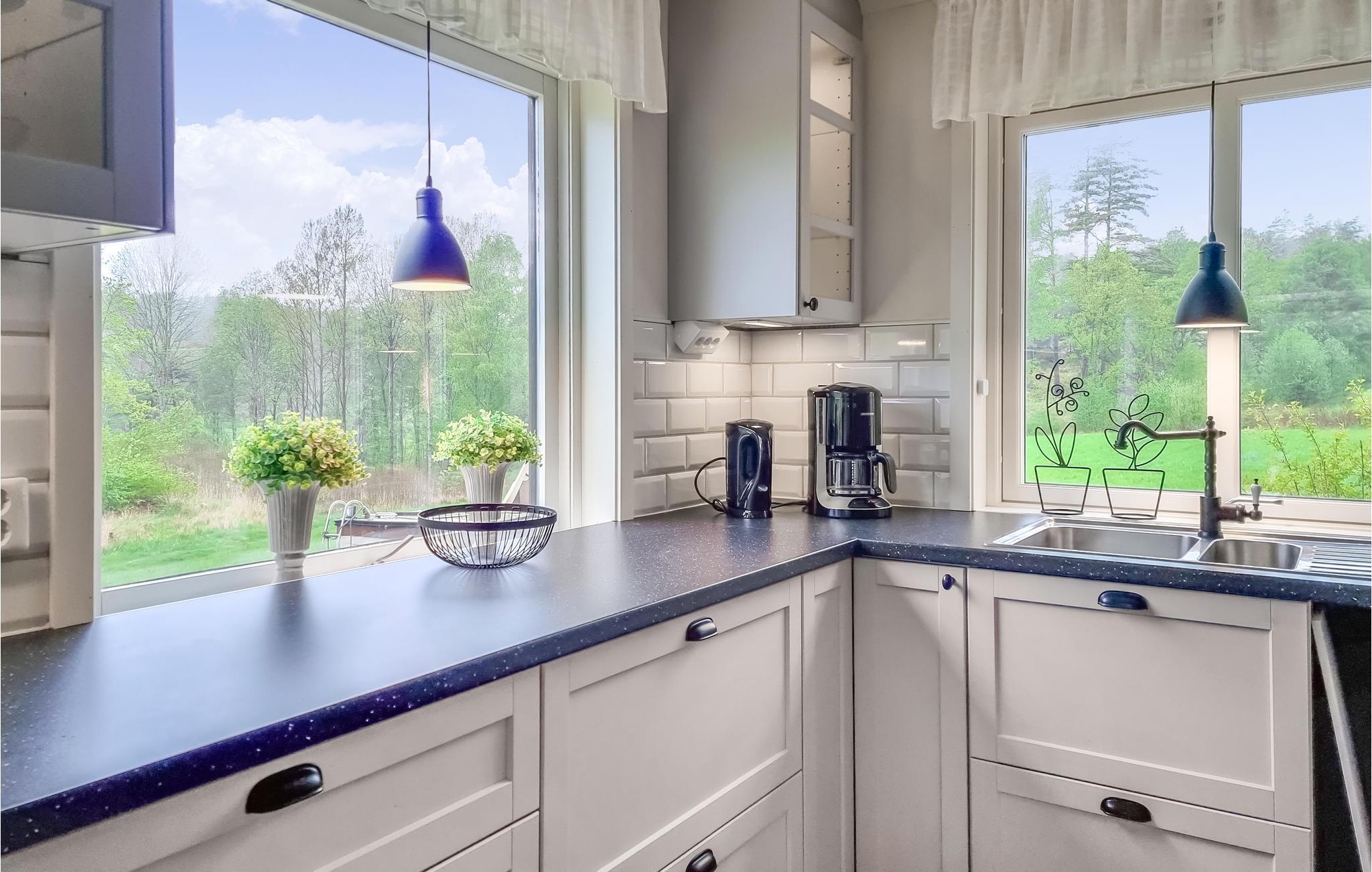 Et rummeligt feriehus på stor naturgrund. Her kan I nyde freden og privatlivet omgivet af brede enge i frodigt grønt. I kan grille på terrassen og endda blive hængende i dårligt vejr, fordi den er overdækket. I kan også bruge haven til at have det sjovt med jeres børn og kæledyr og se dem lege ubekymret. Rummelighed, enkelhed og frem for alt komfort venter jer i stuen. Dette træhus tilbyder jer et stort køkken og en komfortabelt møbleret stue, hvor I kan tilbringe meget tid med jeres ledsager. I befinder jer uforstyrret tæt på en skov, der indbyder til gode gåture og til badning i havet skal I kun køre 10 minutter til Grebbestad. Tanumshede har i århundreder været et samlingspunkt for indlandsbefolkningen i Tanum. Hele centret er derfor under monumentbeskyttelse. Oplev de mange gamle bygninger, men også de kendte klippetegninger. I kan finde en masse information om det i Vitlycke Museum. Om sommeren bliver gården levende, når får, grise og okser flytter ind. Det store indkøbscenter byder på mange muligheder for at shoppe eller drikke kaffe og spise ude med sine restauranter og caféer.