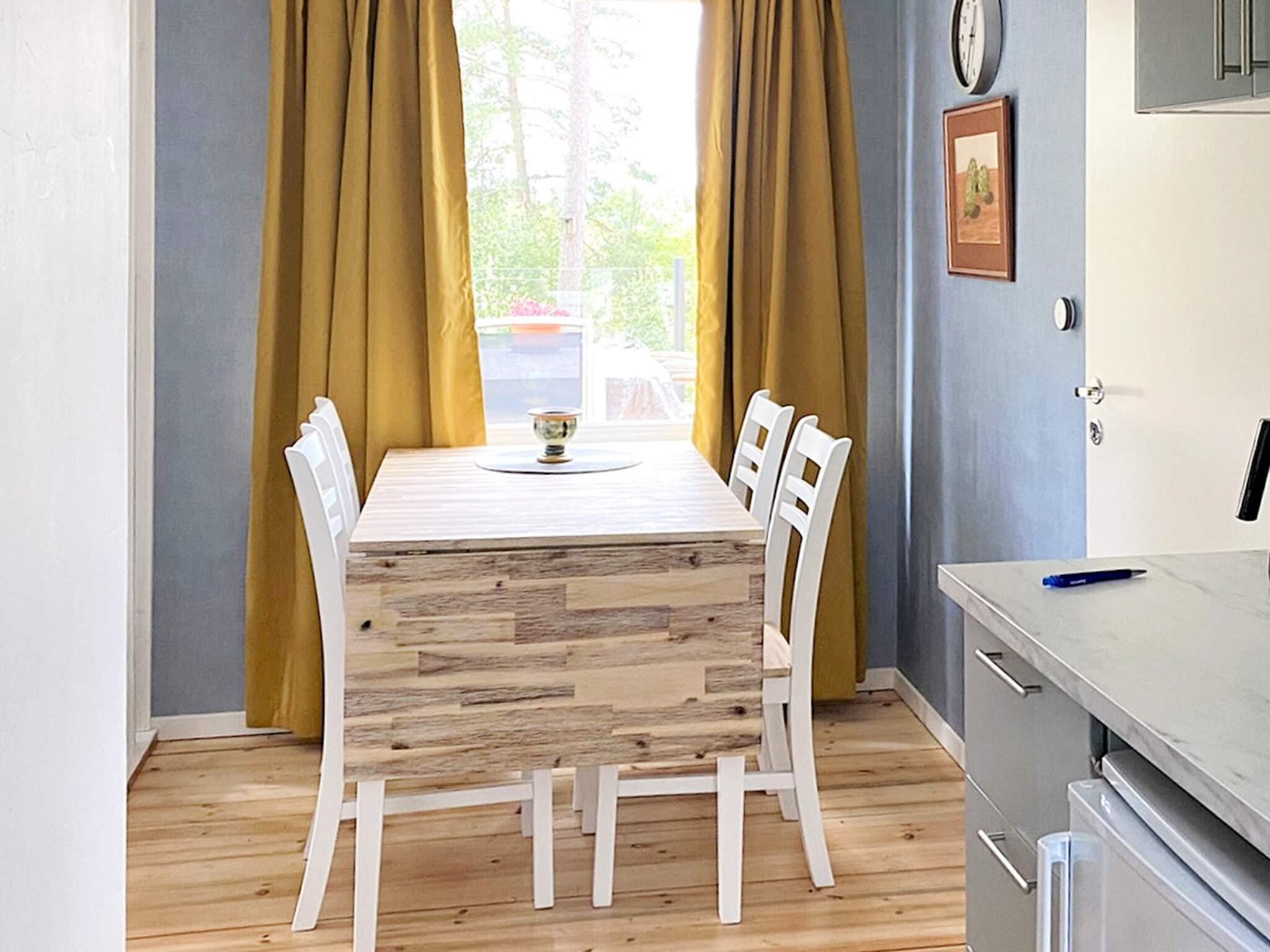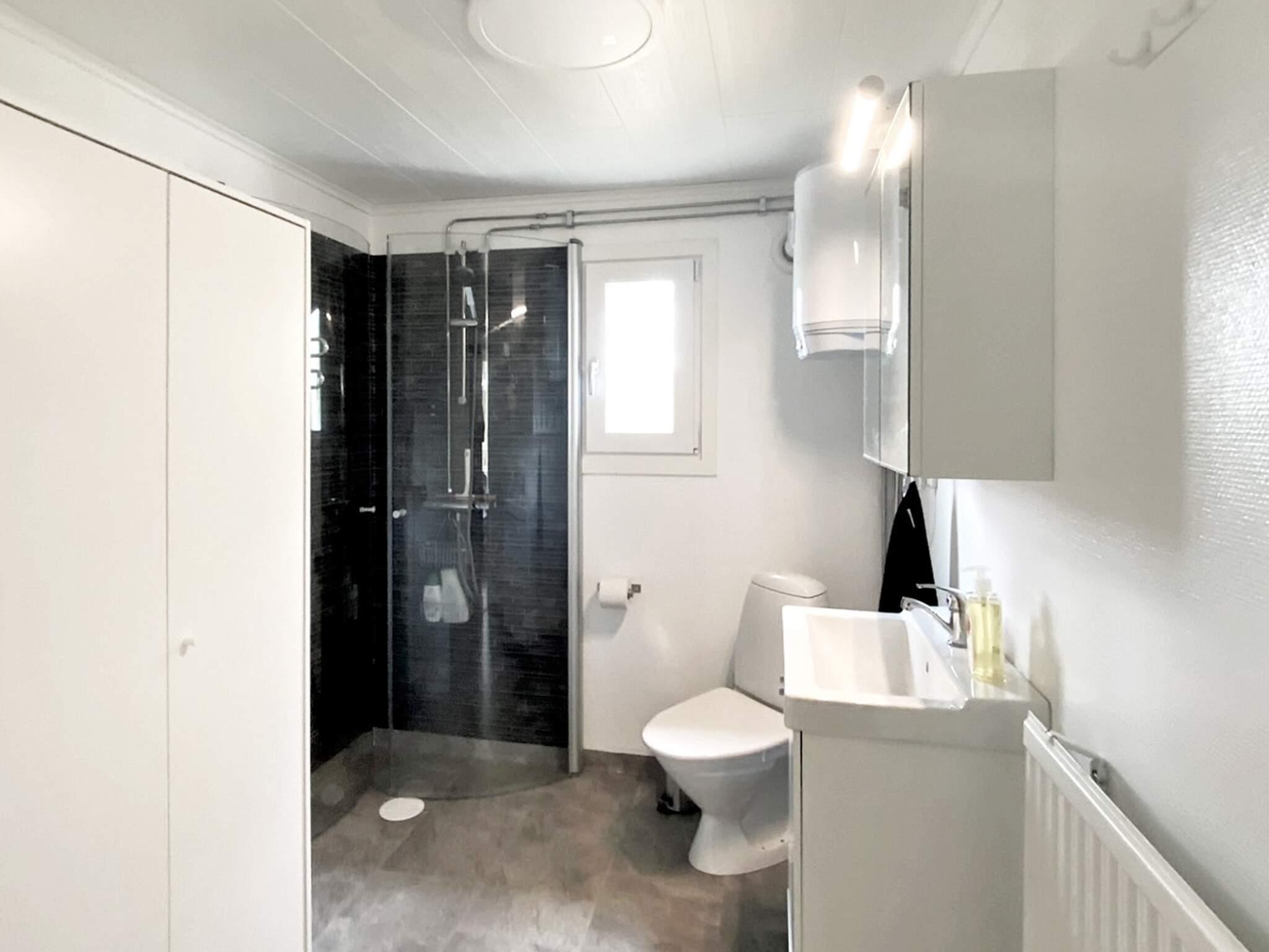Huset består av ett kök och matplats som är öppet mot vardagsrummet. I vardagsrummet finns det en säng som kan användas som en 80 säng eller 160, samt en bäddsoffa. Bäddsoffan har en tempur madrass och är enligt ägaren bästa sängen i huset. Vid sidan av dubbelsängen i bäddsoffan finns möjlighet att ha en liten 70cm madrass på soffan för tex ett litet barn. Det finns ett sovrum med en enkel säng som man går genom för att nå det stor nyrenoverade badrummet. I stugan finns så man kan ta med sig sitt boxerkort hemifrån och koppla in till TV.