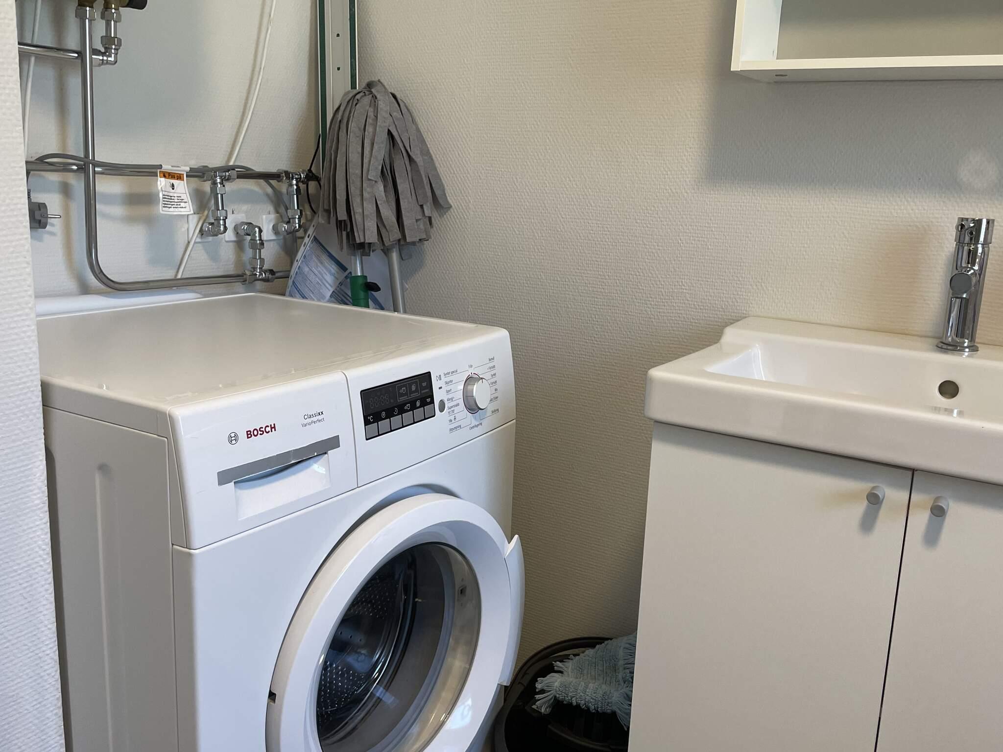 Bad/wc: Vaskemaskine, wc, håndvask, bruser