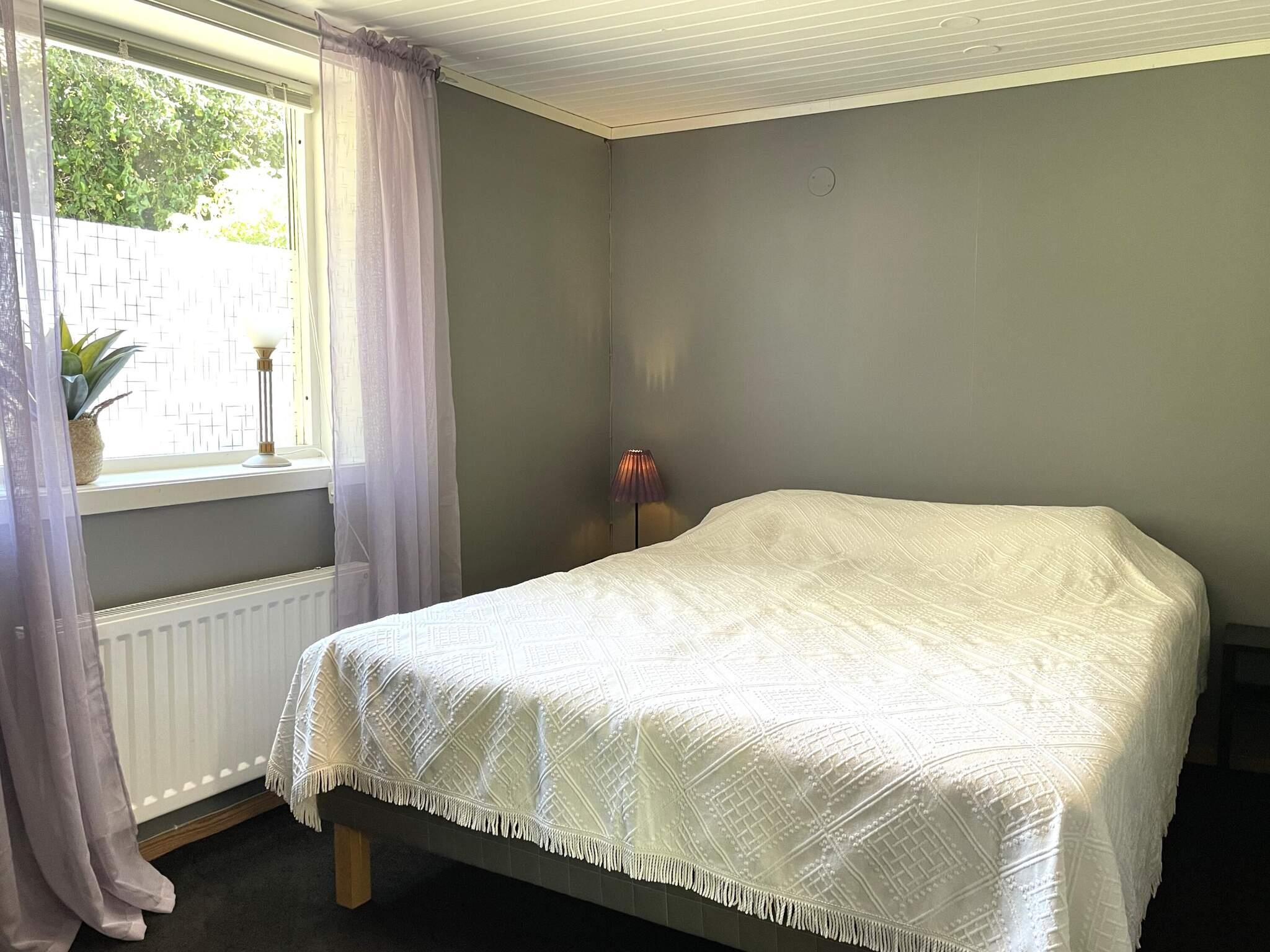 Till vänster om hallen något upphöjt ligger vardagsrummet med skön soffa. Här finns tv med hdmi-uttag där du kan koppla in din egen medhavda dator för att streama program. WiFi ingår såklart till boendet. Huset har två sovrum. Det ena med en dubbelsäng 180cm bred och det andra med en våningssäng. Detta boende passar dig som reser med barn och som vill bo avskilt och ha lugn och ro men ändå närhet till västkustens bästa utflyktsmål.