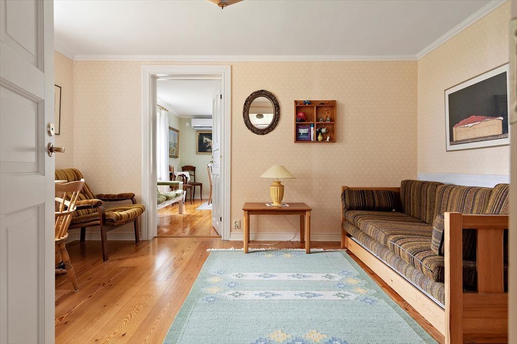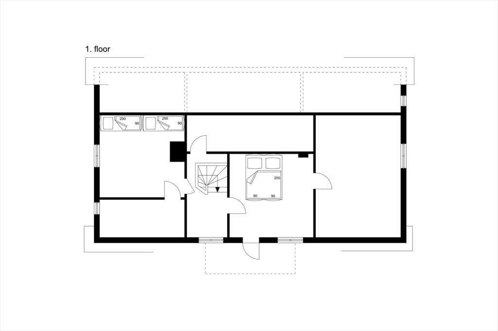 Feriehuset har et boligareal på 190 m² og er blevet omfattende moderniseret. Stuen er indrettet med sofagruppe, kakkelovn og TV og ligger i åben forbindelse med spisestuen, som er indrettet med antikke møbler. Køkkenet er udstyret med elkomfur, mikroovn, køleskab med fryser, opvaskemaskine og spisehjørne. Badeværelset har toilet, håndvask, brusekabine og vaskemaskine. I stueetagen er der to værelser, et med en dobbeltseng og et med en enkeltmands sovesofa. På førstesalen er der også to værelser, begge indrettet med to enkeltsenge. Der er en tremmeseng og en højstol til et barn. Huset har koldt og varmt vand og kan opvarmes med elradiatorer eller varmepumpe. Derudover er der en overdækket veranda med siddemøbler. Til huset hører også havemøbler, grill, to voksencykler, tre børnecykler (26/26/20 tommer), en robåd samt fire redningsveste, to af dem i børnestørrelse.