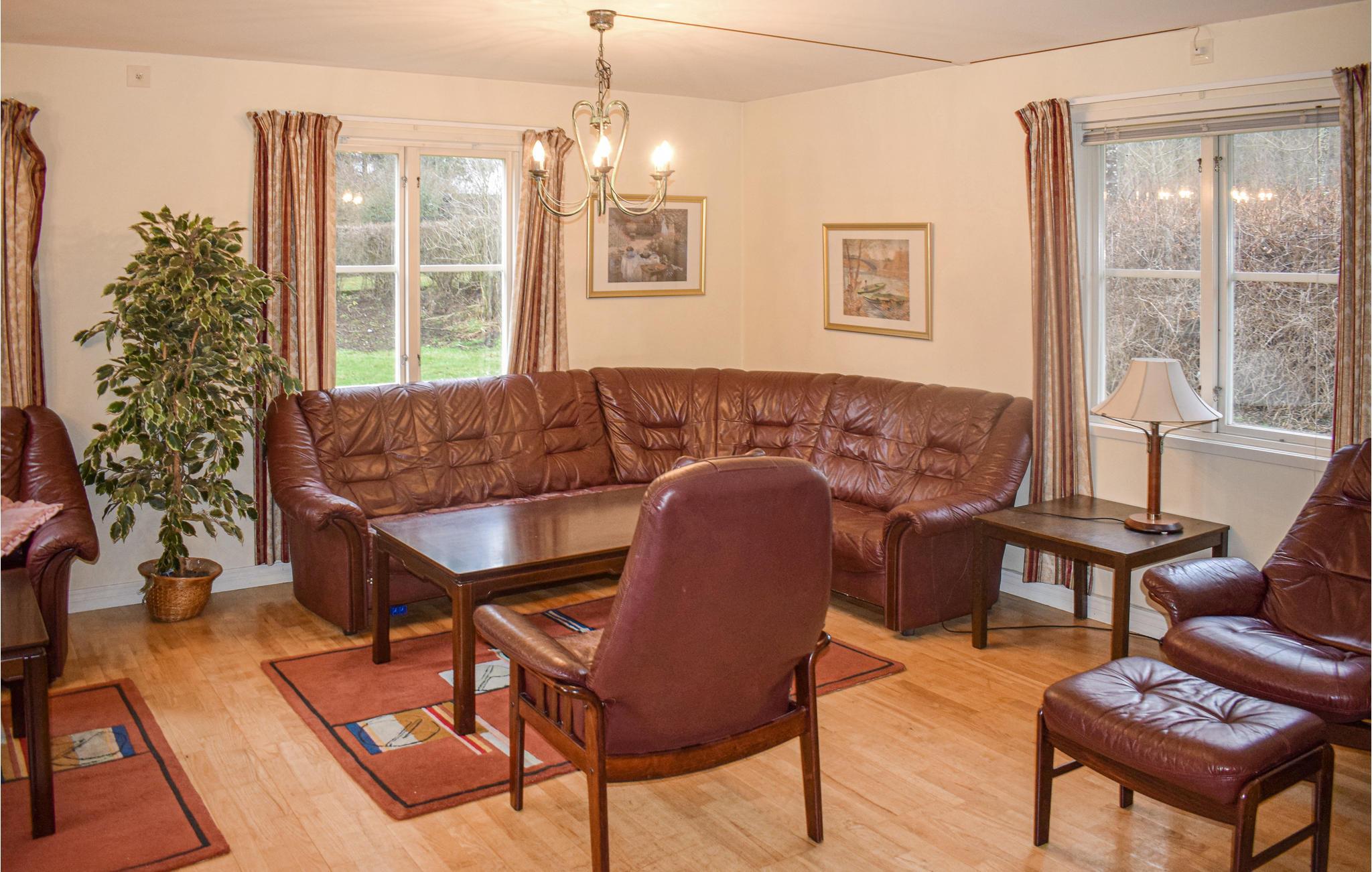 Feriehuset har masser af opholdsarealer, og alle soveværelser ligger på anden sal. Feriehuset har en dejlig gårdhave og er meget naturskønt i et sørigt område, hvor flere af søerne er forbundet, så du kan tage på spændende udflugter på vandet. I den nærliggende sø Tiken er der både fine fiskemuligheder og bademuligheder.