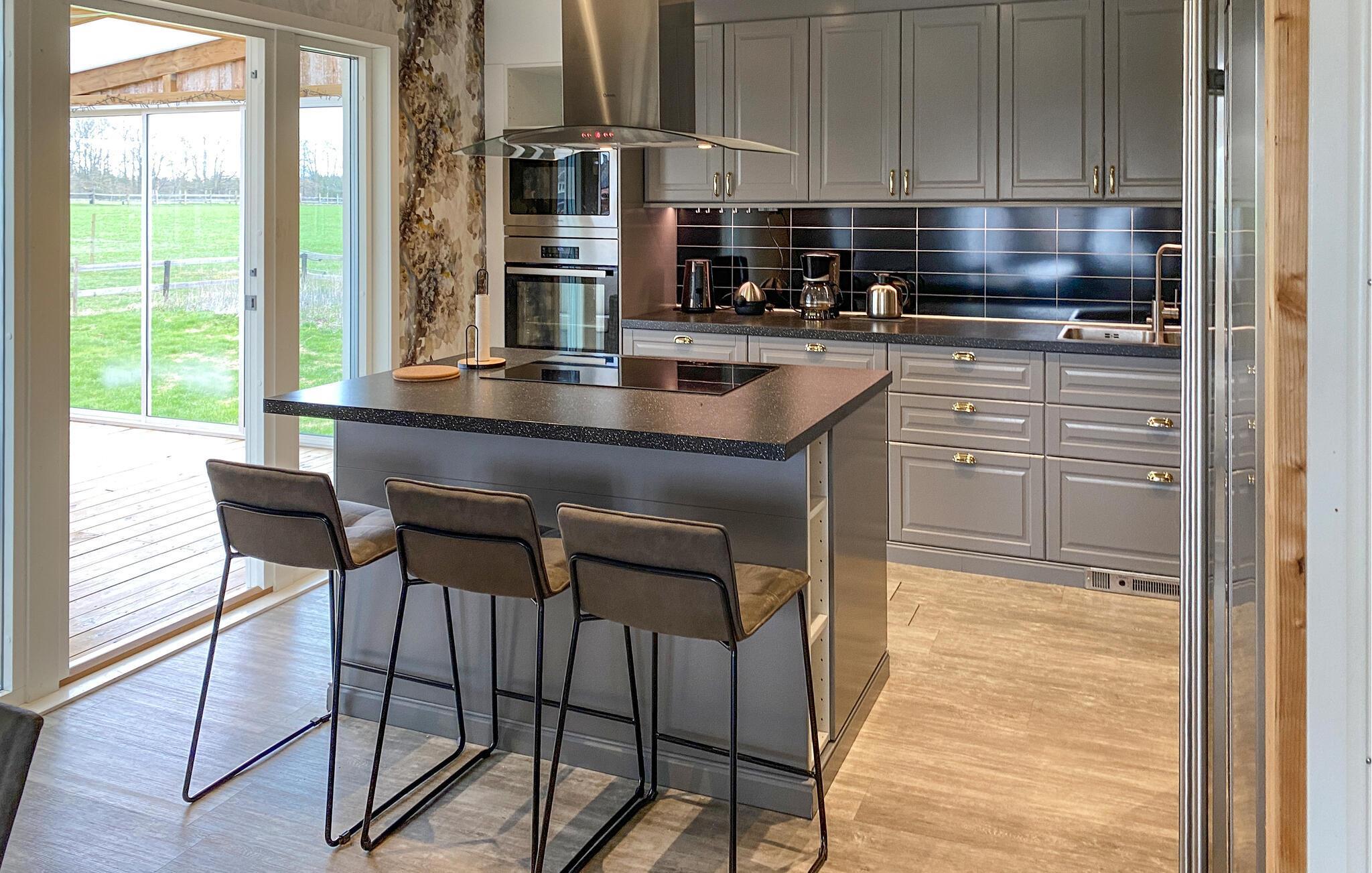 Velkommen til Småland, som I kender fra Astrid Lindgrens historier, og hvor dette charmerende hus danner rammen om en herlig ferie med store oplevelser i naturen. Her bor I tæt på de tætte skove, funklende søer og smukke landsbyer, og indretningen byder på et vellykket mix af det rustikke og det moderne, der gør det hyggeligt at være her og får skuldrene til at sænke sig. Tilbered en masse god mad i det veludstyrede køkken og servér måltiderne ved det nydelige spisebord, inden I runder aftenen af med brætspil til sent i sofaområdet.