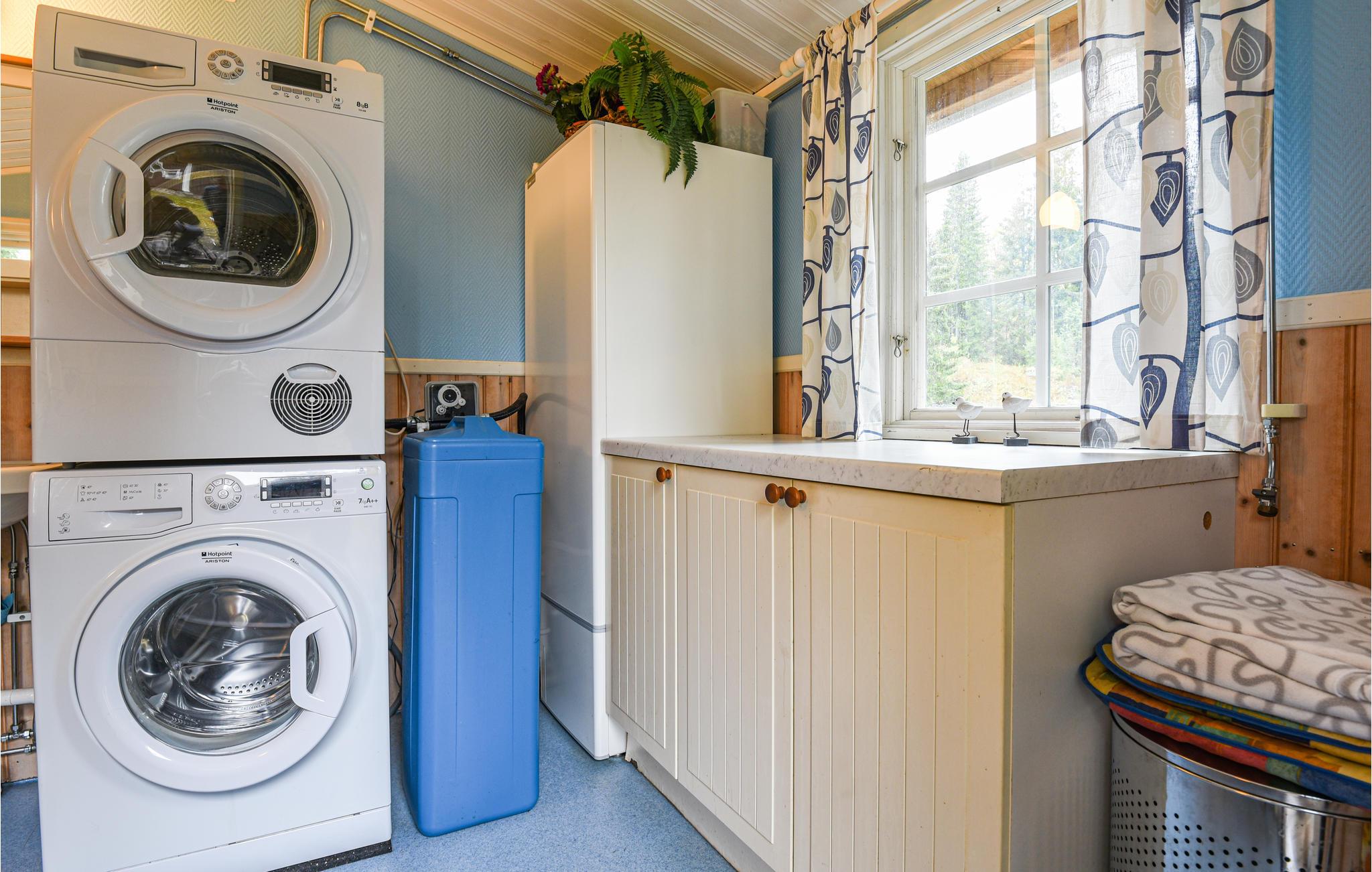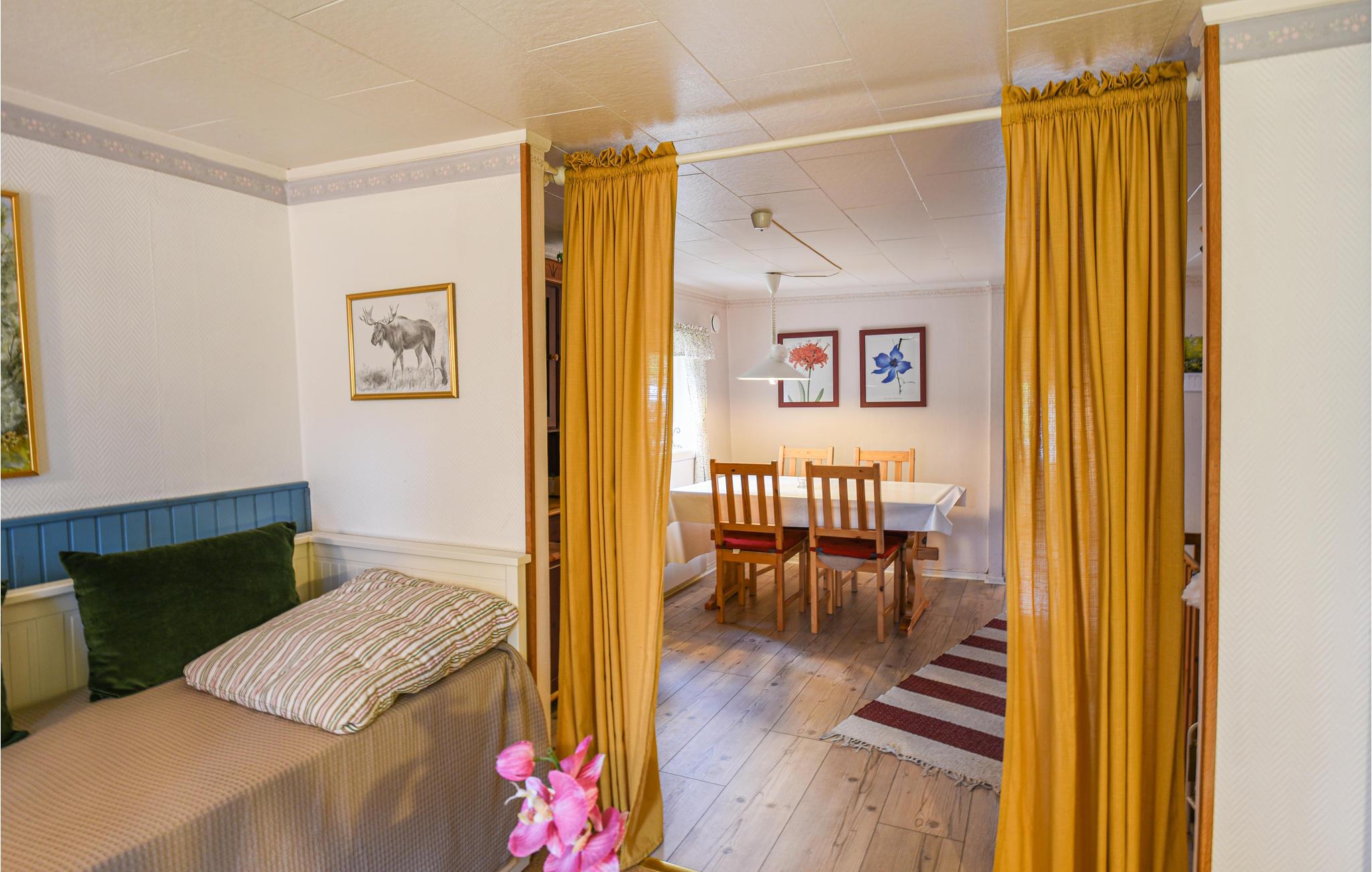 Med en smuk beliggenhed på en odde ud i søen Kråkvattnet ligger dette feriehus med overdækket terrasse og udsigt til vandet.