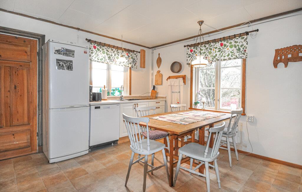 Glæd jer til en afslappende ferie i dette charmerende svenske feriehus. Beliggende i maleriske landlige omgivelser tilbyder dette hus en smuk blanding af traditionel charme og moderne bekvemmeligheder. Slap af i den rummelige stue med dens mange komfortable siddepladser og rustikke brændeovn. Træpanelerne og de varme farver skaber en indbydende atmosfære. Brug det generøse træspisebord til at nyde måltider med familie eller venner.
