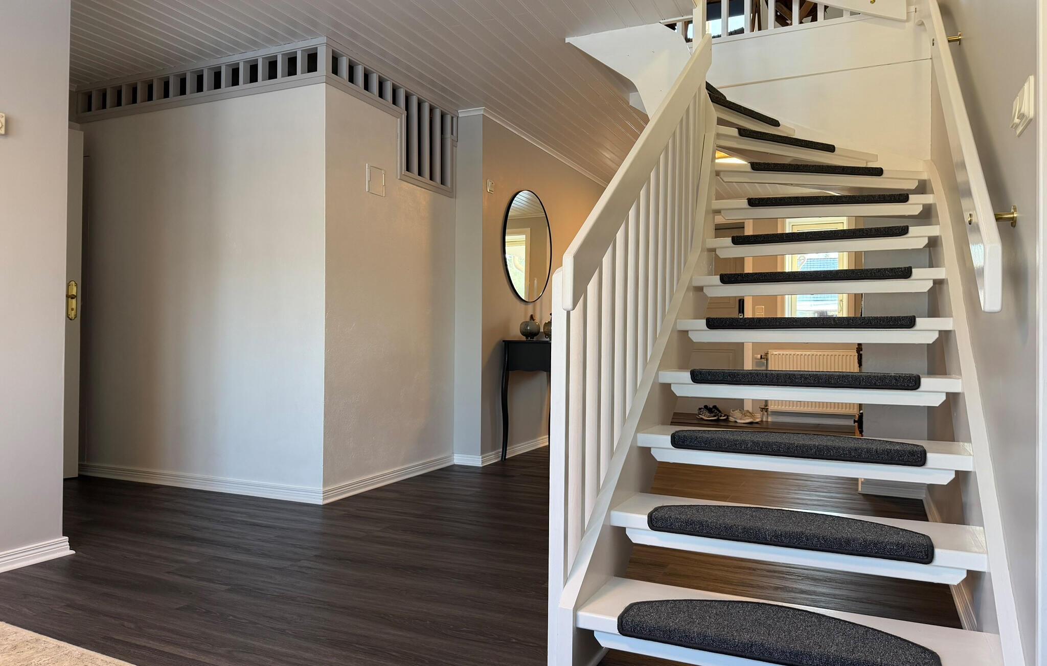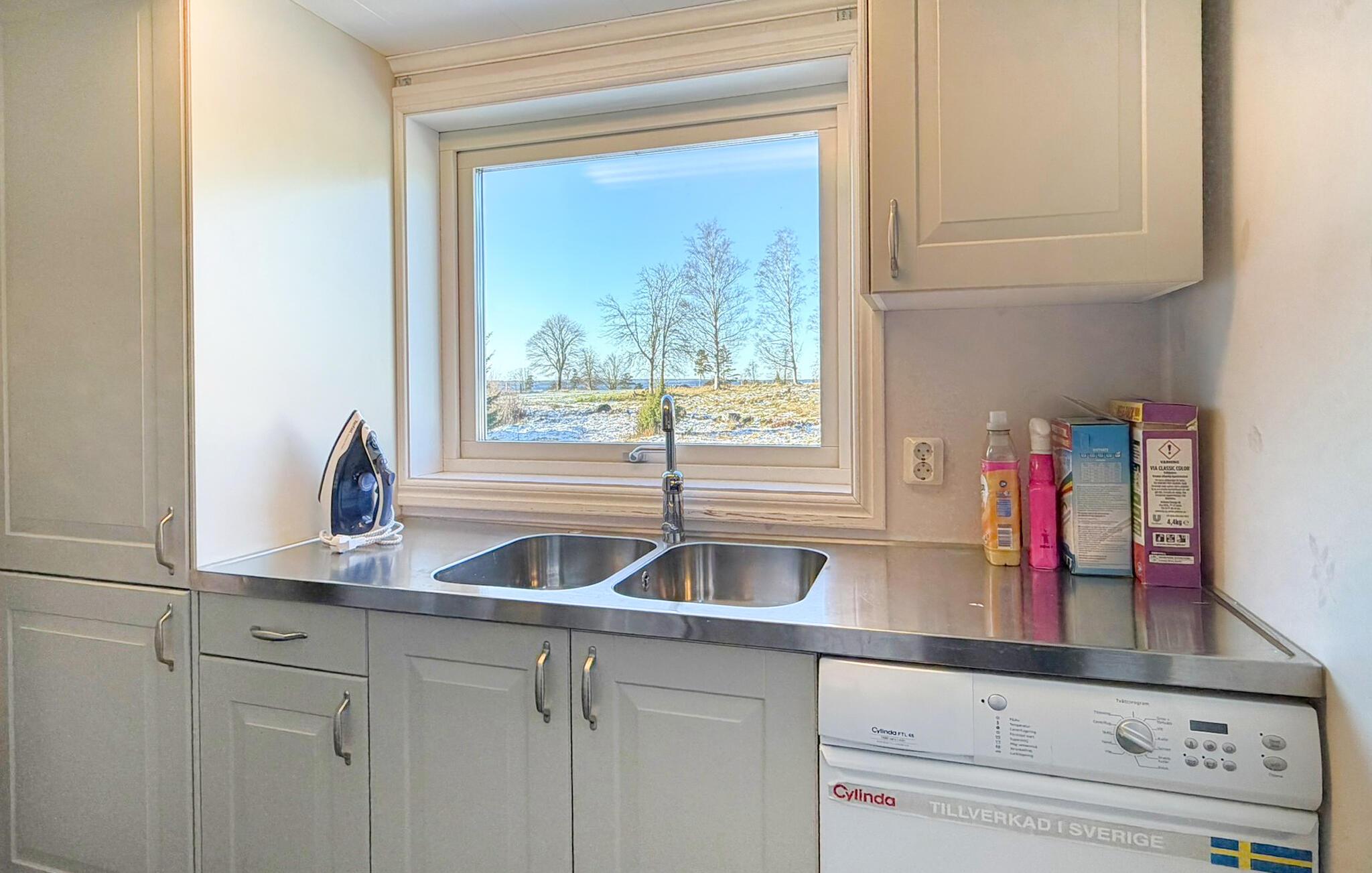 Dette hus kombinerer harmonisk komfort og underspillet elegance. Diskrete farver, smukke trædetaljer og en brændeovn skaber en atmosfære, der udstråler både ro og hygge. Nyd den storslåede udsigt over søen Unden, se en god serie eller bag en sprød pizza i brændeovnen.