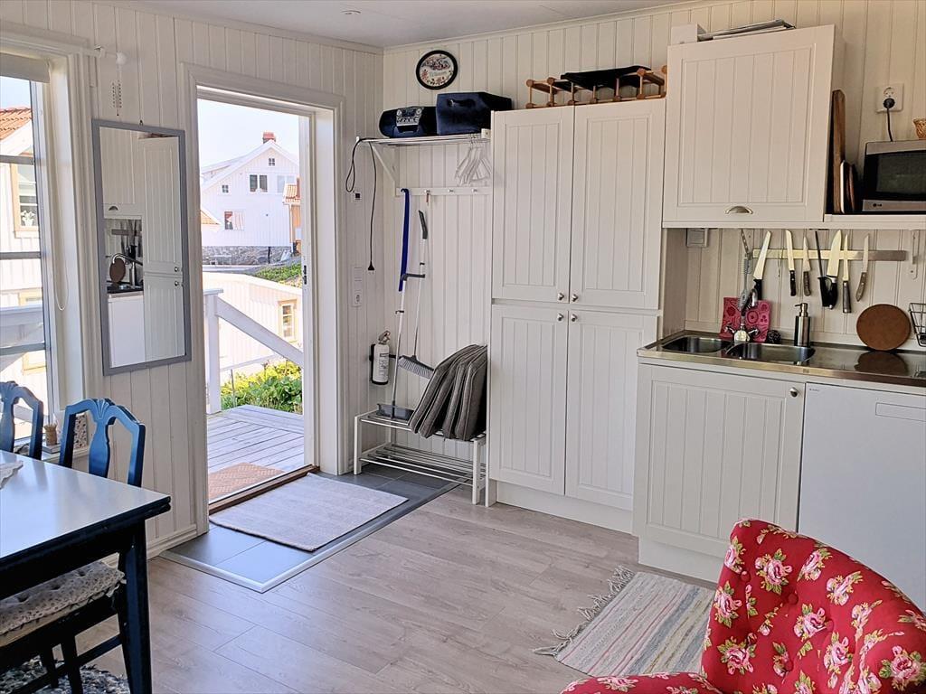 Sommerhus i Tjörn, Vestsverige, med plads til 2 voksne. Der er en hyggelig indretning, og du finder desuden vaskemaskine og opvaskemaskine i boligen.