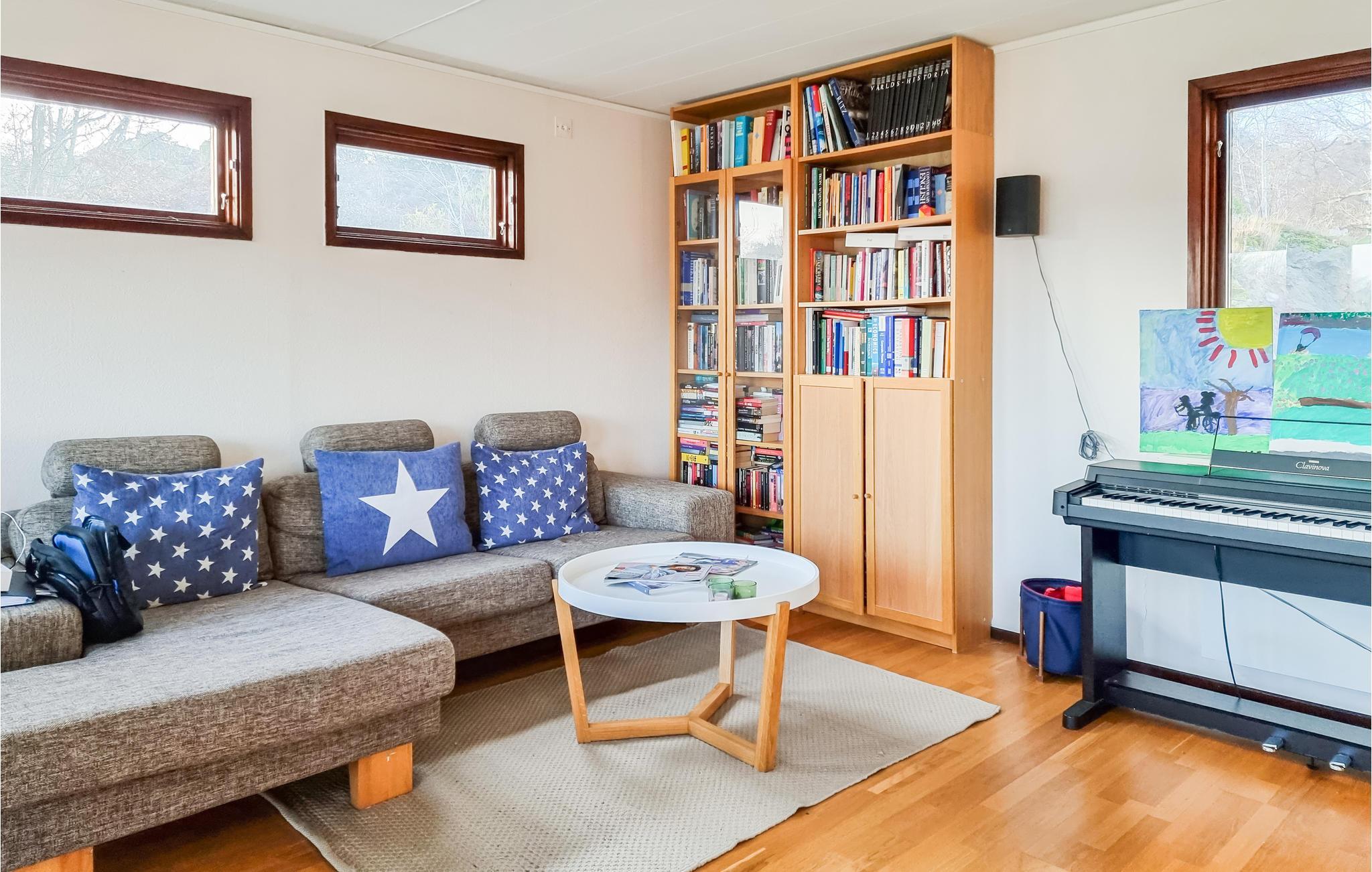 Dette hus giver jer masser af plads til at udfolde jer og nyde den svenske sommer fuldt ud. I det veldisponerede og rummelige feriehus kan I glæde jer til de stille morgentimer med morgenmad og solopgang, mens I har udsigt til fjorden og en kæmpe have med træveranda. I kan nyde solen, gå lange ture eller se frem til en hyggelig aften med friskfangede fisk på grillen. Stranden ved en klippekyst er kun 250 m væk.
