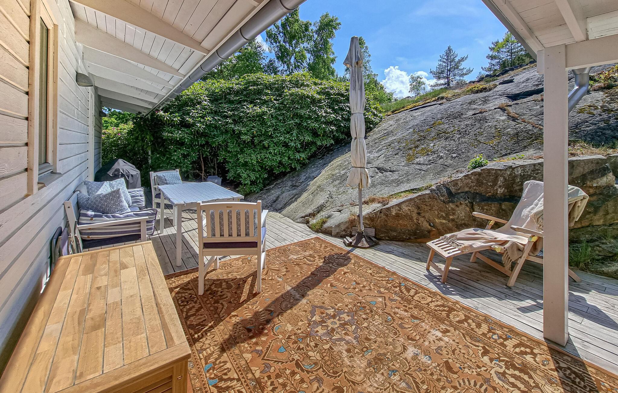 Den brændefyrede sauna og den omkringliggende træterrasse giver jer herlige muligheder for afslapning. Nyd den vidunderlige havudsigt, der følger jer fra næsten alle steder i huset og haven. Den smukke have lægger op til at nyde livet og have det rart, mens den friske havluft puster liv i jeres sanser.
