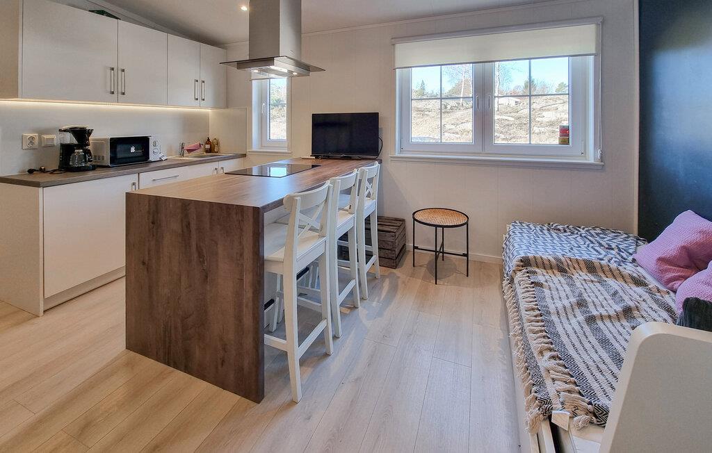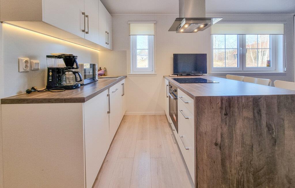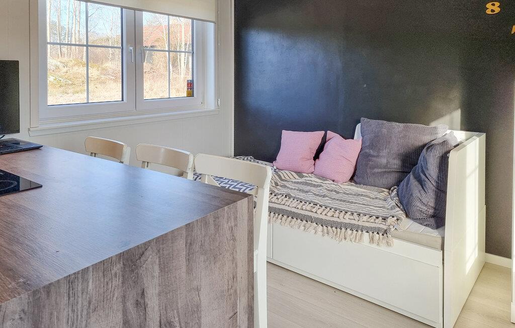 Velkommen til dette moderne og komfortabelt indrettede refugium, som giver jer en behagelig base for en ferie tæt på naturen. Glæd jer til at lave mad sammen i det åbne køkken-alrum og tag plads ved den elegante spiseplads. Planlæg jeres udflugter med et glas vin og gør jer godt tilpas i den indbydende sofa med en god bog.