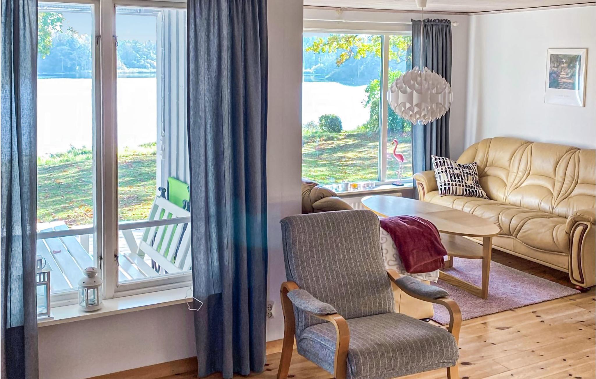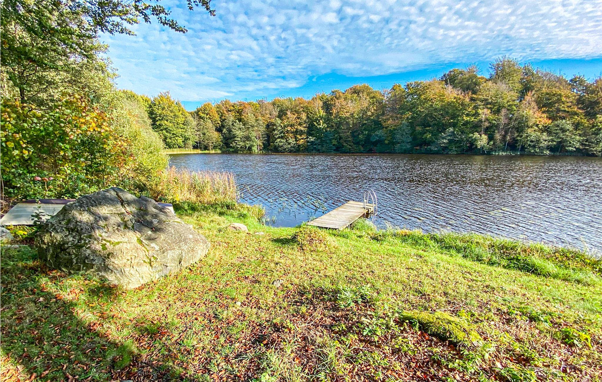 Velkommen til denne hjemlige bolig, bestående af et smukt hovedhus og et hyggeligt udhus. Her finder I plads til jeres store familie, der kan lide at tilbringe tid sammen i naturen. Nyd de lyse, indbydende lokaler og sæt jer godt til rette i sofaen om aftenen, hvorfra I kan beundre udsigten over søen. Start jeres morgen med en dampende kop kaffe på en af de to terrasser, mens I planlægger jeres aktiviteter for den kommende dag. Lystfiskere vil glæde sig over, at en båd med årer kan benyttes gratis, og at fiskekortet til husets gæster også er inkluderet. Vis jeres evner og med lidt held kan I servere frisk fisk til middag.