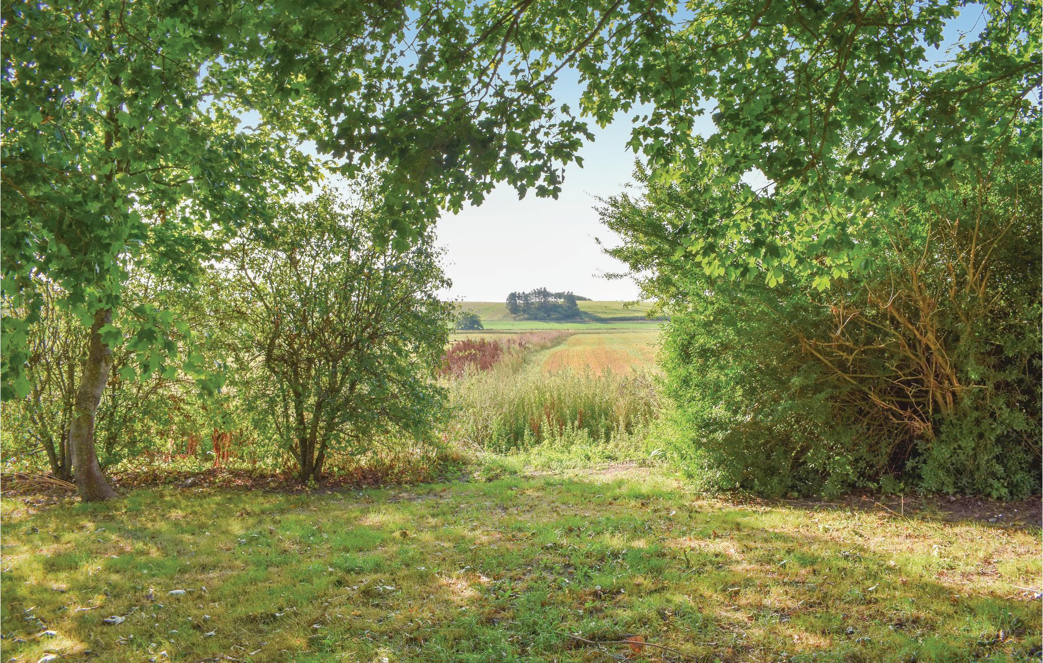 Træd udenfor døren og nyd den rolige atmosfære i den velholdte gårdhave. Lad børnene lege på den store græsplæne eller gå en tur langs de modne træer. Udsigten over de omkringliggende marker er beroligende og indbydende på samme tid.