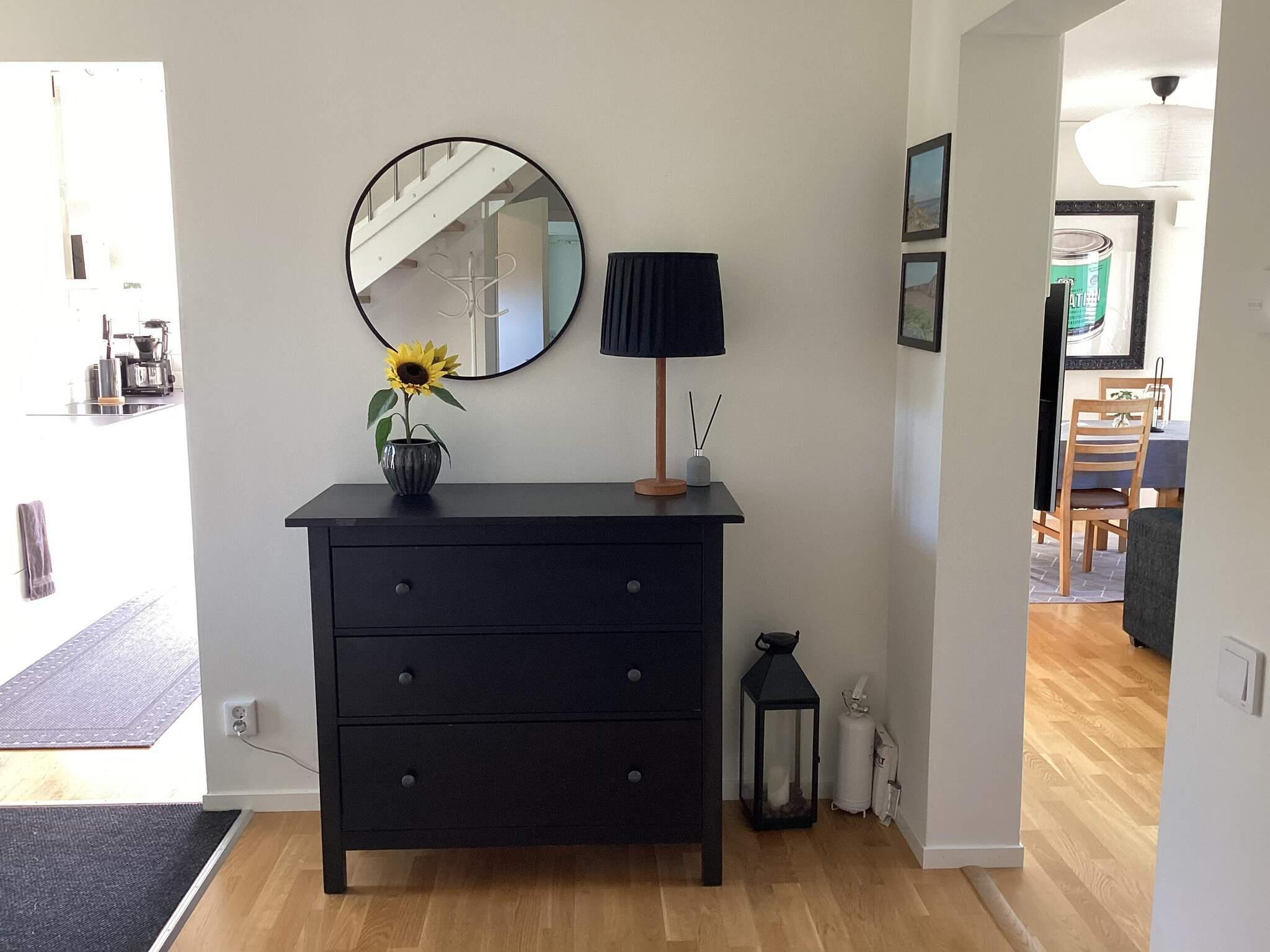 I husets bottenvåning finns ett välutrustat kök med matplats, öppet mot vardagsrummet som har bekväma soffmöbler och en smart-TV utan kanaler. Det större sovrummet har en dubbelsäng och det mindre har en våningssäng. Badrummet är helkaklat med dusch. I groventrén finns tvättmaskin. En trappa upp finns tre sovrum. Två har dubbelsäng och ett har en enkelsäng. Vardagsrummet har en soffgrupp och en smart-TV. Badrummet har dusch. I huset finns gratis wifi. Runt huset löpet en härligt rymlig terrass med flera olika utemöbler och solstolar. Här njuter ni och umgås vid både morgonkaffet och grillkvällarna. I det tillbyggda garagets bakre del finns ett rum med en dubbelsäng och badrum med dusch.