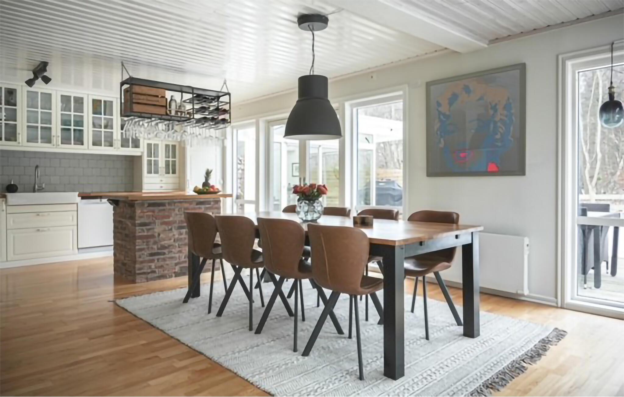 Dette rummelige og komfortabelt møblerede feriehus byder jer velkommen med et rummeligt og smagfuldt møbleret interiør, hvor store vinduer sikrer masser af naturligt dagslys. Glæd jer til afslappede måltider og harmoniske spilleaftener ved det stilfulde spisebord, samt hyggelige filmaftener i den indbydende stue. Tag en snak over et glas vin i den hyggelige udestue.
