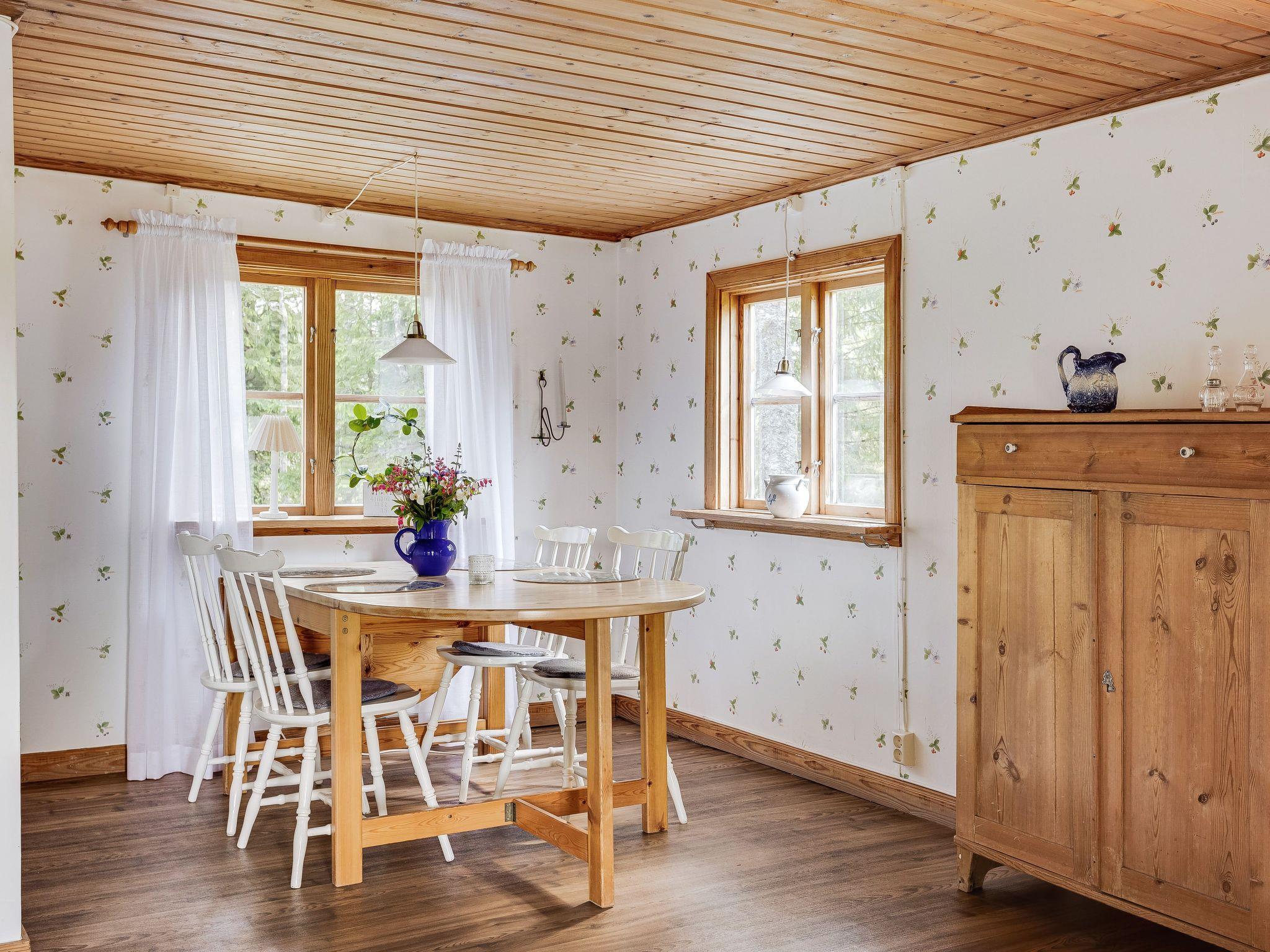 "Måbäcken", 3-room house 100 m2 on 2 levels. Bright, modern and wooden furniture furnishings: living room with Scandinavian wood stove (only for decoration). 1 room with 1 double bed and shower/WC. Kitchen (3 hot plates, oven, toaster, kettle, microwave, freezer, electric coffee machine) with dining table, Scandinavian wood stove (only for decoration), dining table. Exit to the veranda. Electric heating. Upper floor: (steep stair), 1 room with sloping ceilings with 2 beds and 1 double bed. Wooden floors. Terrace roofed. Terrace furniture, barbecue (portable). Facilities: washing machine, children's high chair, baby cot. Please note: non-smoking house. Freezer approc. 100 l. Bed layout is flexible. There are more sleeping options available than the maximum number of people allowed which may, however, not be exceeded. SE04653