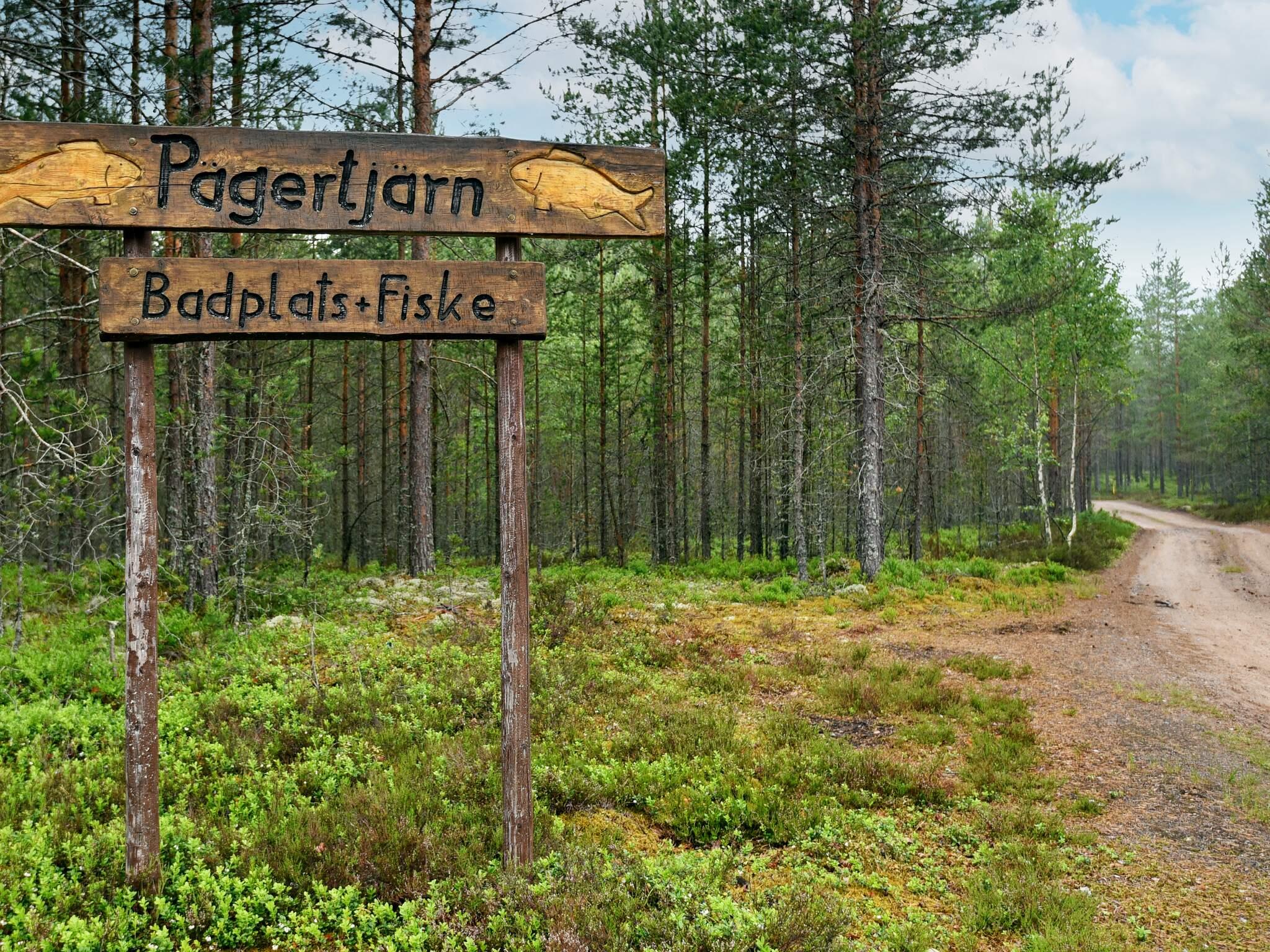 Det går att bada i sjön nedanför huset men vill man ha det riktigt finns så erbjuder ”Pägertjärn” en mycket fint iordningställd bad och fiskecamp 2,8 km från huset. Fritt fiske för barn, i övrigt gäller fiskekort