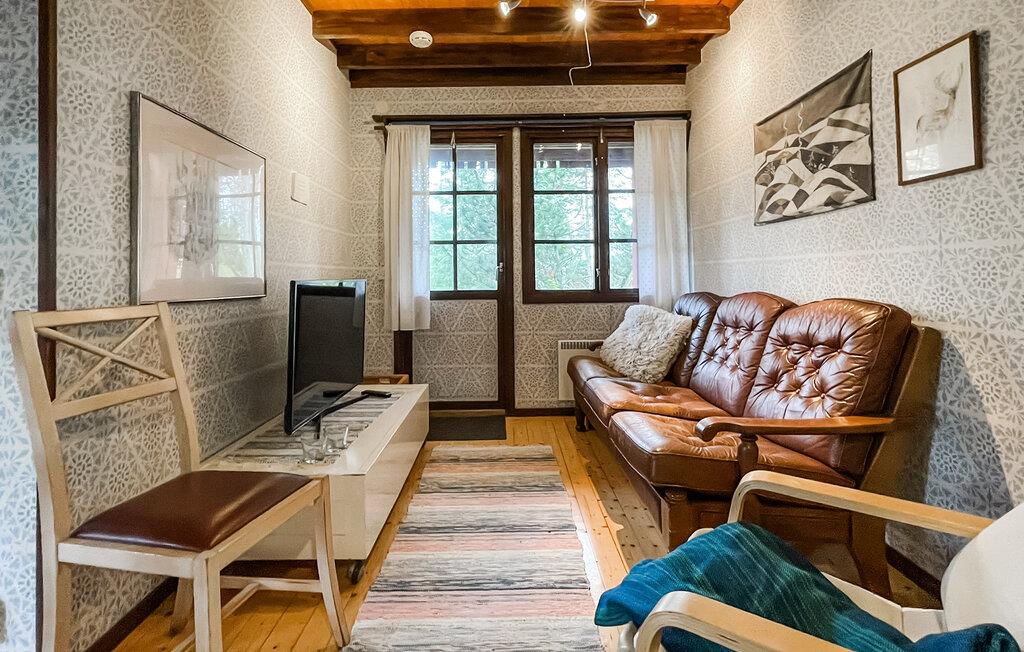 Omgivet af idyllisk natur byder dette smukke feriehus jer velkommen med et hyggeligt interiør. Nyd solide måltider ved det indbydende spisebord, mens den norske brændeovn knitrer sagte, planlæg jeres udflugter, og find sammen til hyggelige spilleaftener efter en lang dag i den friske luft.
