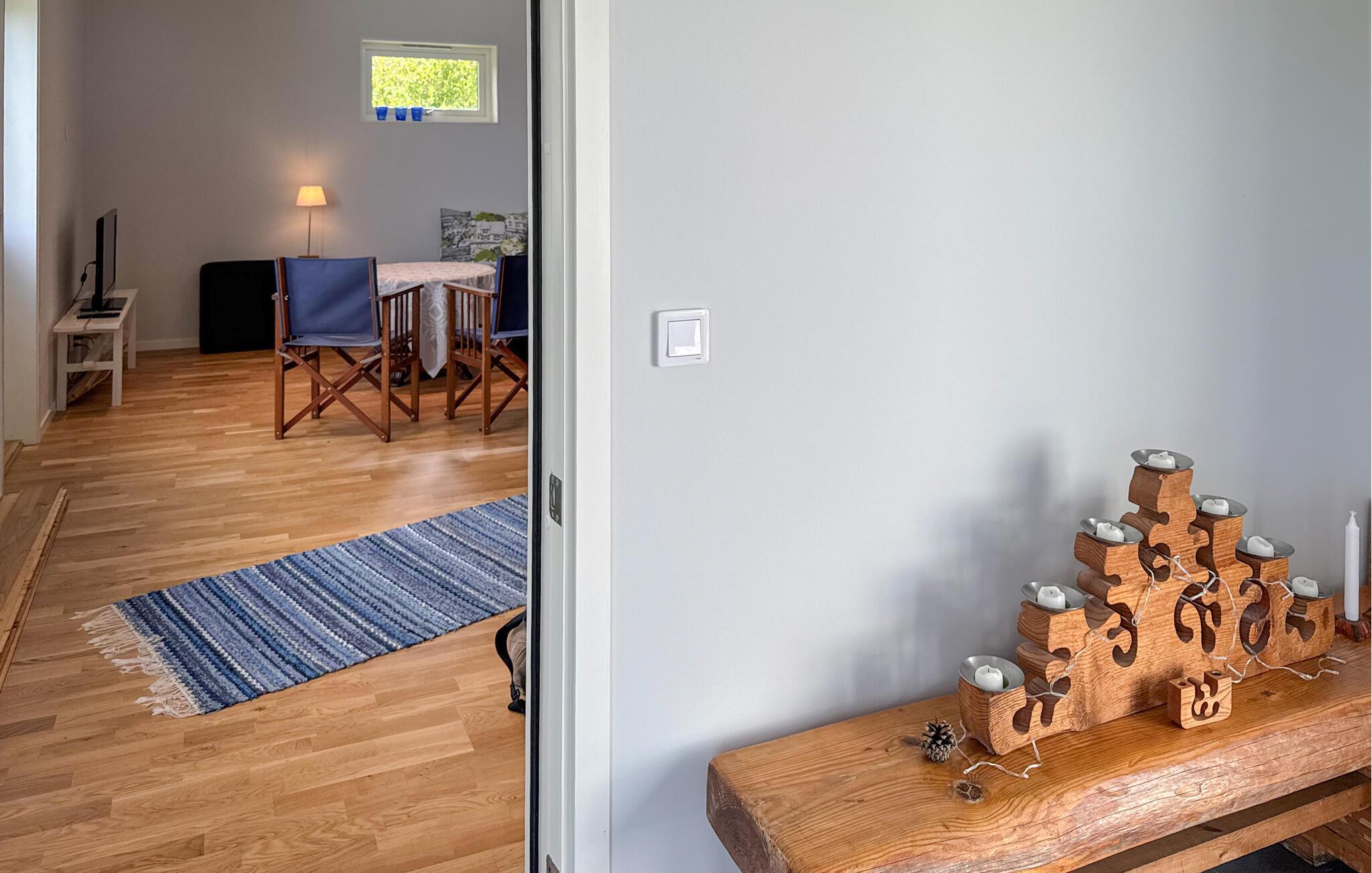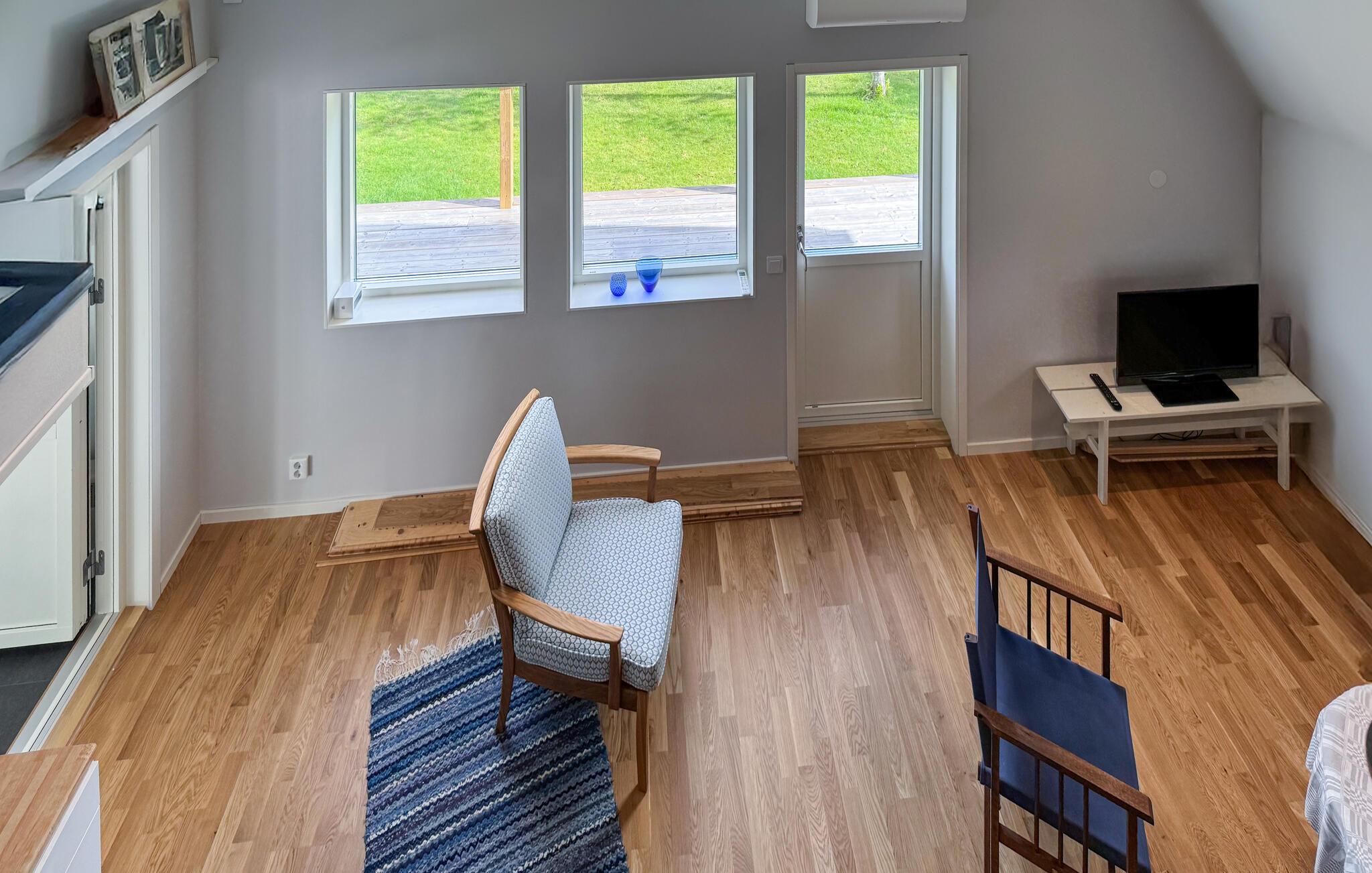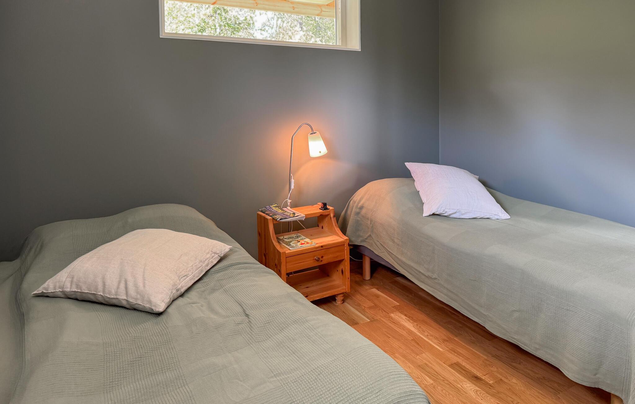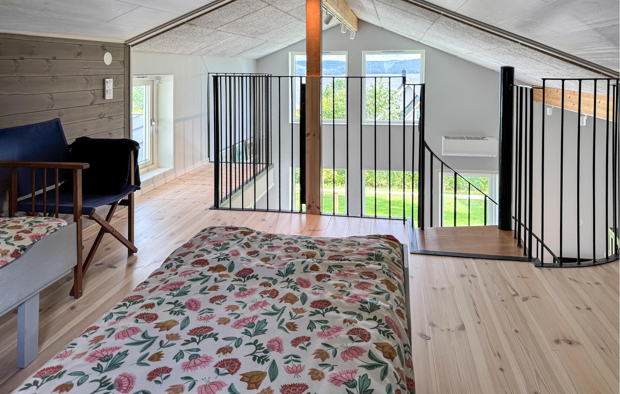 Tilbring en afslappende ferie i dette stilfulde feriehus, der ligger i umiddelbar nærhed af Sommen-søen. Nyd den lyse opholdsstue med store vinduer, der lukker masser af lys ind og tilbyder udsigt over landskabet. Find jer godt til rette på de mange siddeområder, brug tv'et til en filmaften eller nyd hyggelige timer ved det runde spisebord. Tilbered jeres måltider i det smukke køkken med moderne apparater og rigelig arbejdsplads og lad jer inspirere af husets venlige atmosfære.