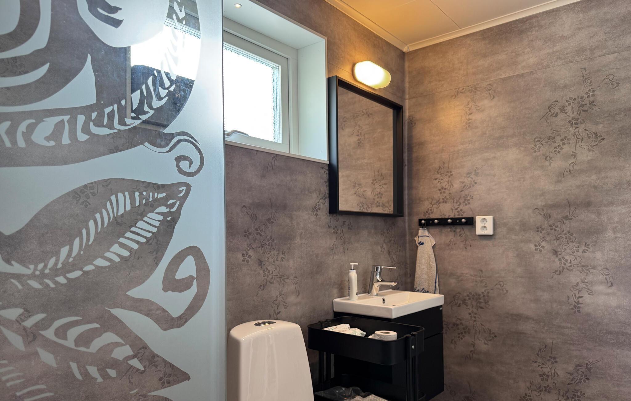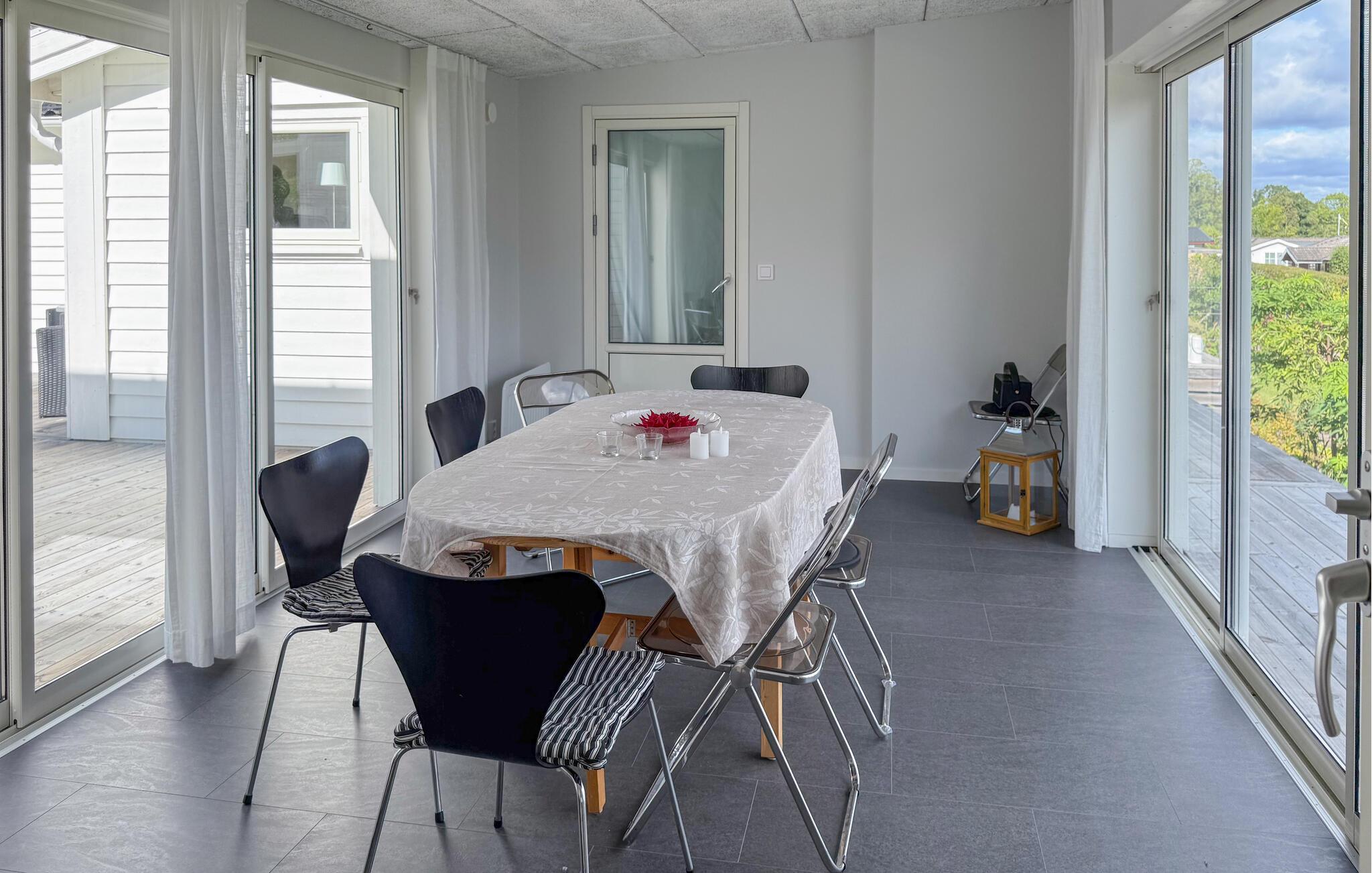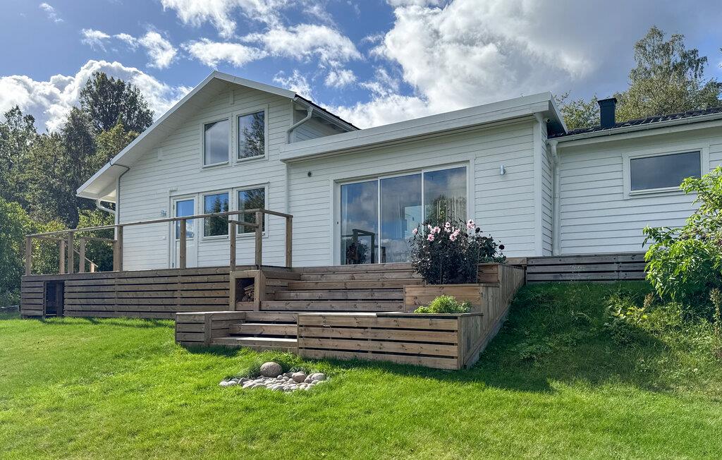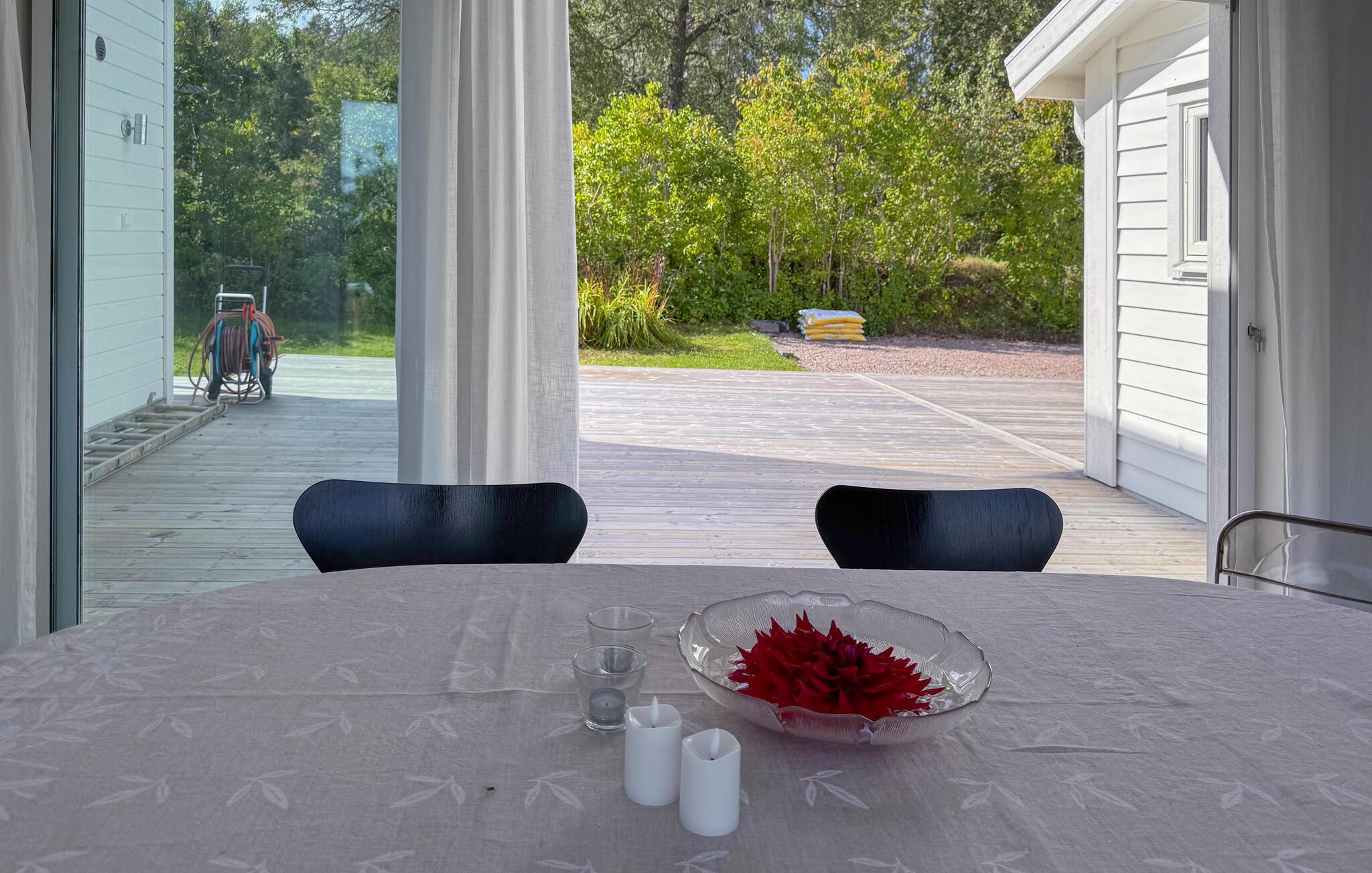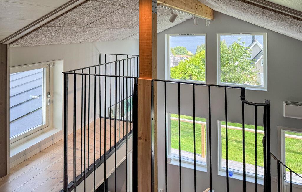 Tilbring en afslappende ferie i dette stilfulde feriehus, der ligger i umiddelbar nærhed af Sommen-søen. Nyd den lyse opholdsstue med store vinduer, der lukker masser af lys ind og tilbyder udsigt over landskabet. Find jer godt til rette på de mange siddeområder, brug tv'et til en filmaften eller nyd hyggelige timer ved det runde spisebord. Tilbered jeres måltider i det smukke køkken med moderne apparater og rigelig arbejdsplads og lad jer inspirere af husets venlige atmosfære.