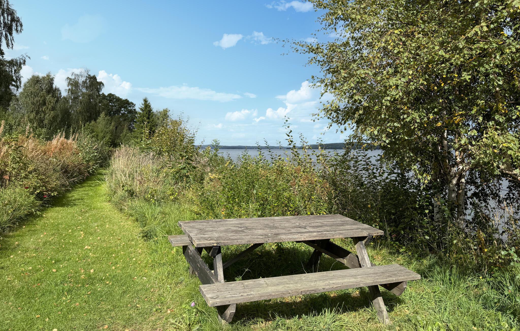 Træd ud på træterrassen, og begynd dagene med morgenmad udendørs. Nyd den vidtstrakte udsigt over det grønne, og brug den velholdte have som et sted at slappe af eller gå til søbredden, hvor I også finder en lille badebro.