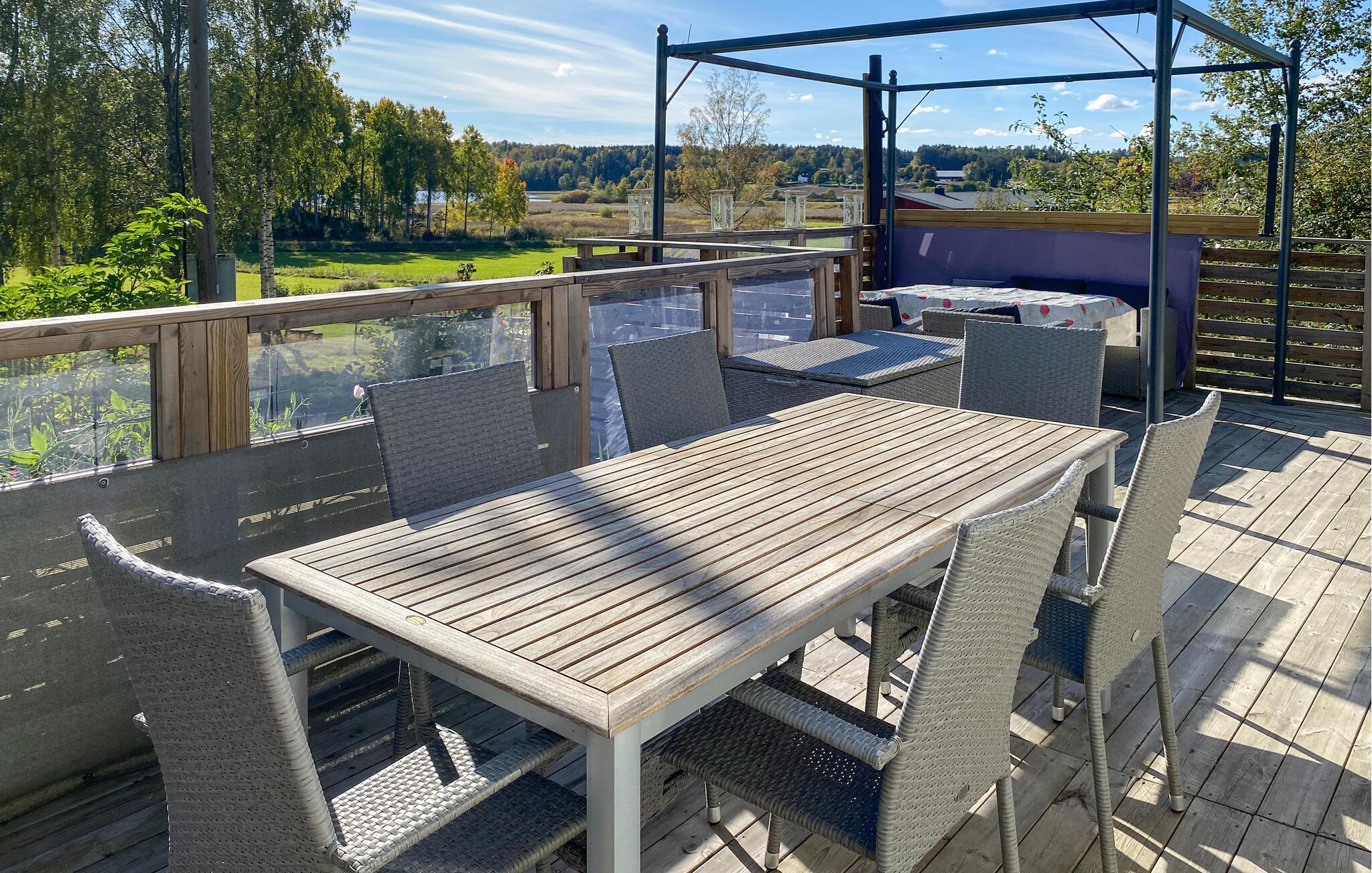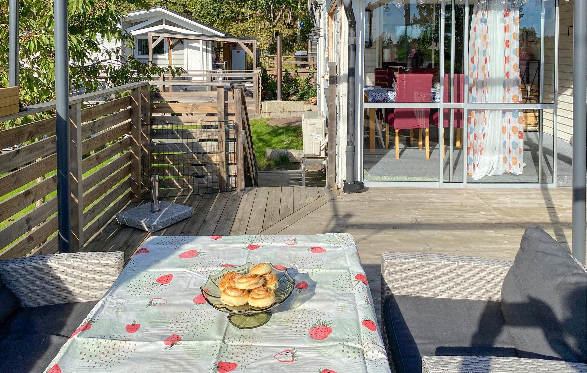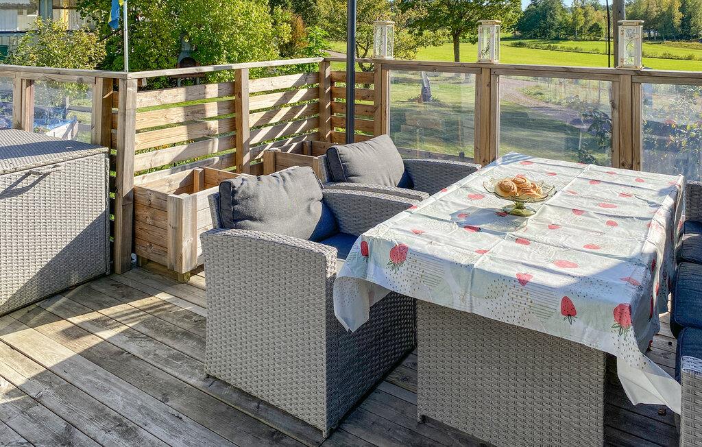 Nyd en afslappende ferie i dette hyggelige feriehus i den maleriske kommune Tranås. Dette charmerende hus giver jer et roligt tilflugtssted med talrige bekvemmeligheder, der sikrer både afslapning og underholdning. Begynd dagene på den rummelige terrasse, som er ideel til morgenmad i det fri. Spisebordet og de komfortable siddepladser gør terrassen til det perfekte sted til hyggelige timer under åben himmel.