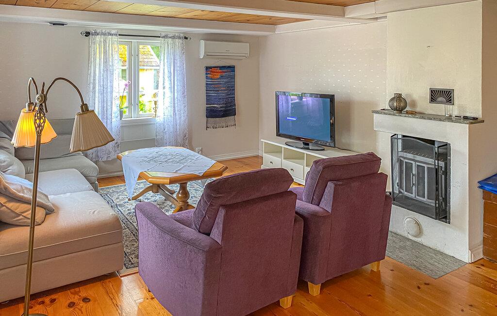 Dine morgener starter med en lækker morgenmad på den indbydende terrasse i jeres feriehus med udsigt over naturen. Lad jer fortrylle af den rolige atmosfære, og udnyt de mange komfortable udendørs siddepladser til at nyde naturen. Indenfor finder I et hyggeligt opholdsområde møbleret med komfortable møbler og en traditionel brændeovn. Sæt jer godt til rette i den behagelige sofa og tilbring afslappende timer med en god bog eller brætspil. Den smagfulde indretning og lysekronerne giver rummet et særligt præg. Det rummelige køkken lægger op til at nyde madlavningen sammen.