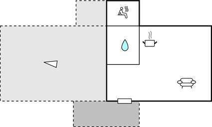 Badeværelse (nr. 1) - WC. Varmt og koldt vand. Bruser