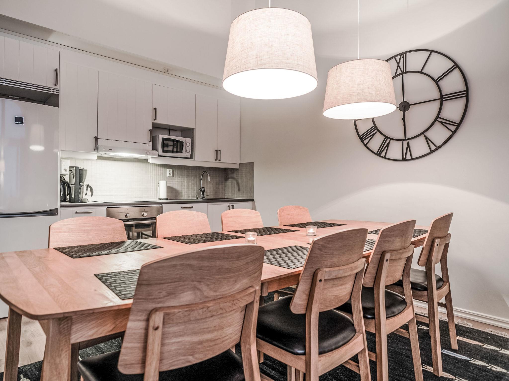 "Trillevallen 9", 5-room apartment. Bright, modern and tasteful furnishings: open living/dining room with dining table and TV. Exit to the balcony. 1 room with 1 double bed. 1 room with 1 x 2 bunk beds (120 cm, length 200 cm) (80 cm, length 200 cm). 1 room with 1 x 2 bunk beds. Open kitchen (oven, dishwasher, 4 ceramic glass hob hotplates, toaster, microwave, freezer, electric coffee machine). 2 showers/WC, Sauna. Upper floor: (spiral staircase), 1 room with 2 beds. Balcony. Very beautiful view of the mountains and the forest. Facilities: washing machine. Internet (WiFi, free). Please note: non-smoking house. Smoke alarm, fire extinguisher.