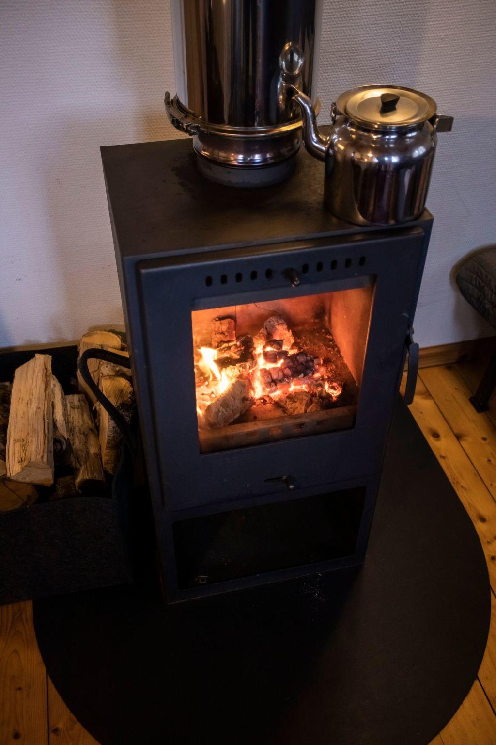 Inside, a carefully furnished living area awaits you, comprising a comfortable living area with dining area, an inviting holiday kitchen with cooker, coffee machine, fridge, microwave, kettle and freezer compartment as well as a cosy sofa that serves as a sofa bed. A separate bedroom with two single beds and a sleeping loft with a futon offer a variety of sleeping options. Efficient electric heating in the bathroom, which is equipped with a WC and shower, provides additional comfort, while a heat pump and a wood-burning stove in the living area create a cosy atmosphere, with free wood as a particularly pleasant bonus.