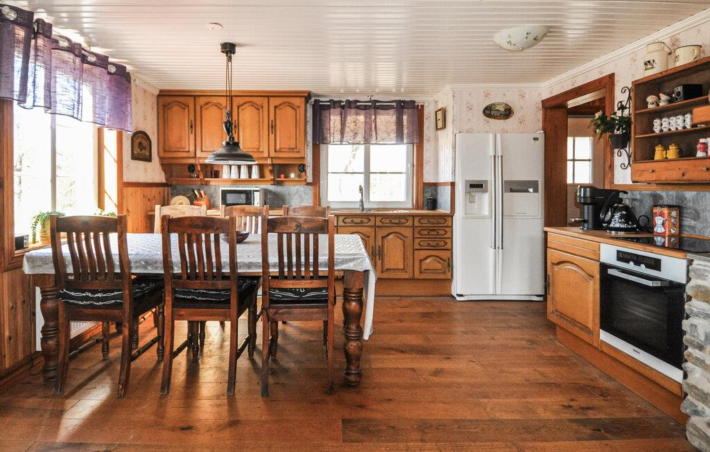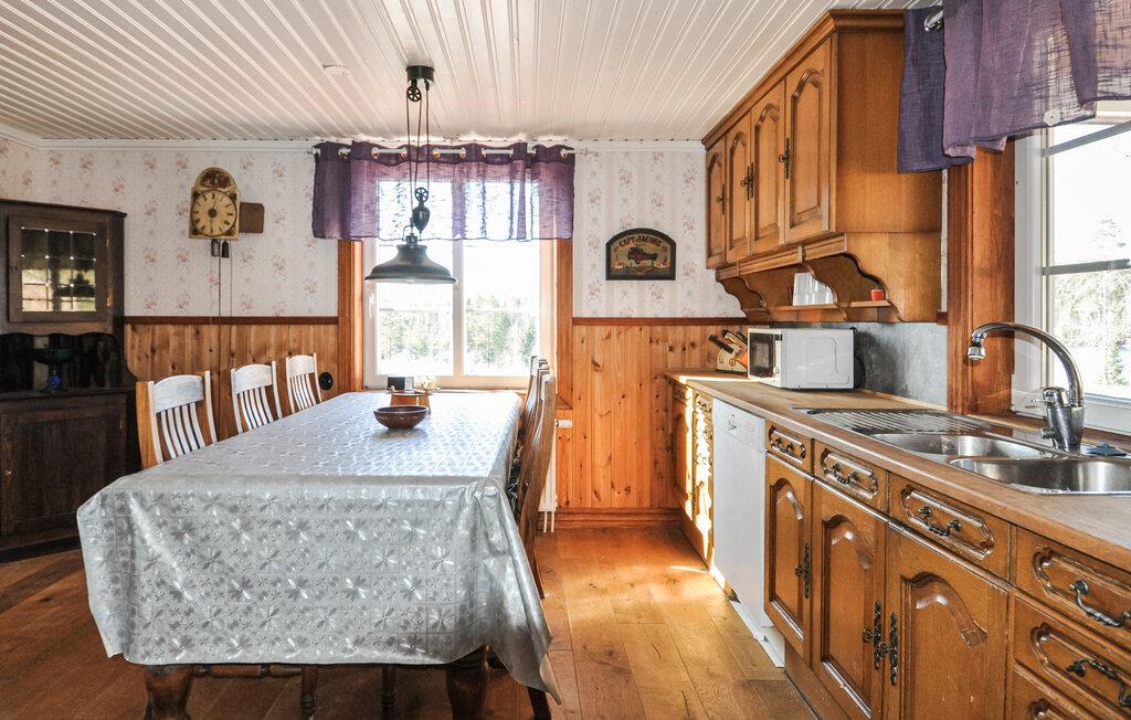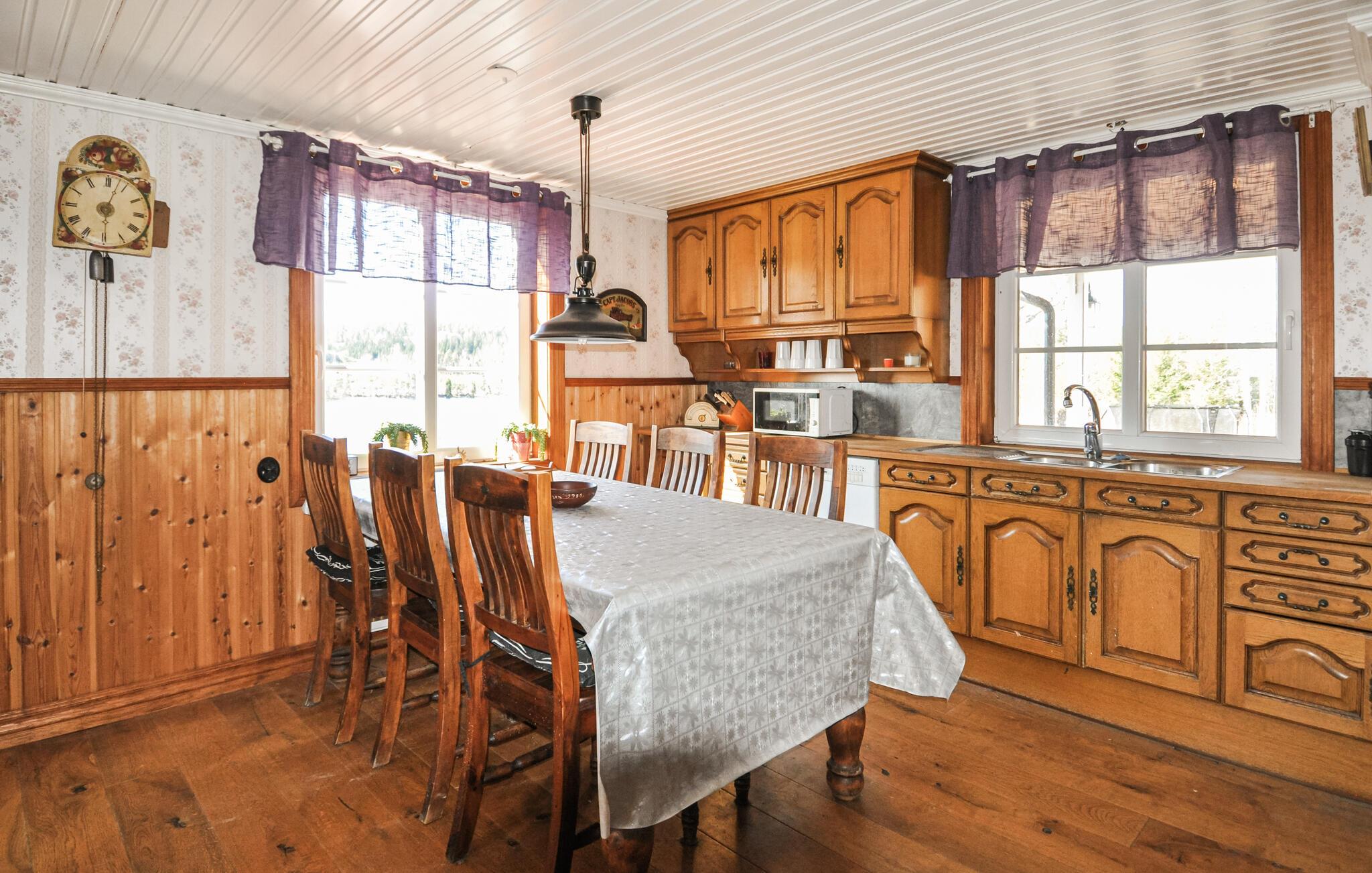 Helt uforstyrret kan I nyde rustik charme og moderne faciliteter i dette rummelige feriehus på en lille ø. Tilbered friskfanget fisk i det åbne køkken og glæd jer til hyggelige måltider ved det behageligt oplyste spisebord. Efter en lang dag i den friske luft indbyder den hyggelige stue til sjove spil, rolige læsetimer eller en filmaften.