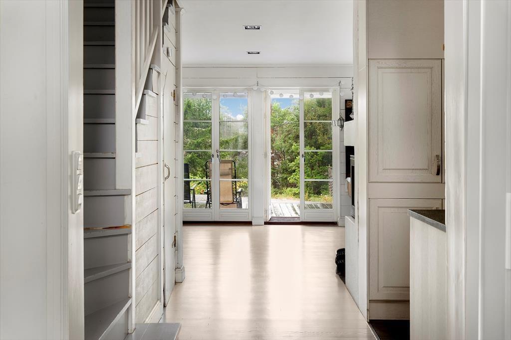 I skærgården øst for Stockholm, på den cirka 63 km² store ø Ingarö, som er tilgængelig via en bro og har flere ferskvandssøer, ligger dette store sommerhus i et boligområde, kun ca. 75 meter fra søen Abborresjö – “Aborresøen” – adskilt af et lille skovområde, på en cirka 4.000 m² stor naturgrund. Her venter en privat både- og badebro ved en børnevenlig sø, hvor du kan bade og fiske. En robåd står naturligvis til rådighed. Er du mere til saltvand, når du Østersøen på få minutter – den ligger kun ca. 2 km væk. Øens landsby Brunn med indkøbsmuligheder ligger blot ca. 3 km fra huset. Storbyen Stockholm ligger kun cirka 30 km væk og er let at nå.